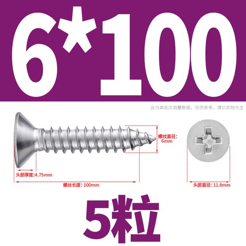 M4m5m6m8 304 Stainless Steel Countersunk Self-Tapping Screw Extended Phillips Flat Self-Tapping Screw KA