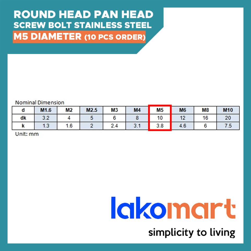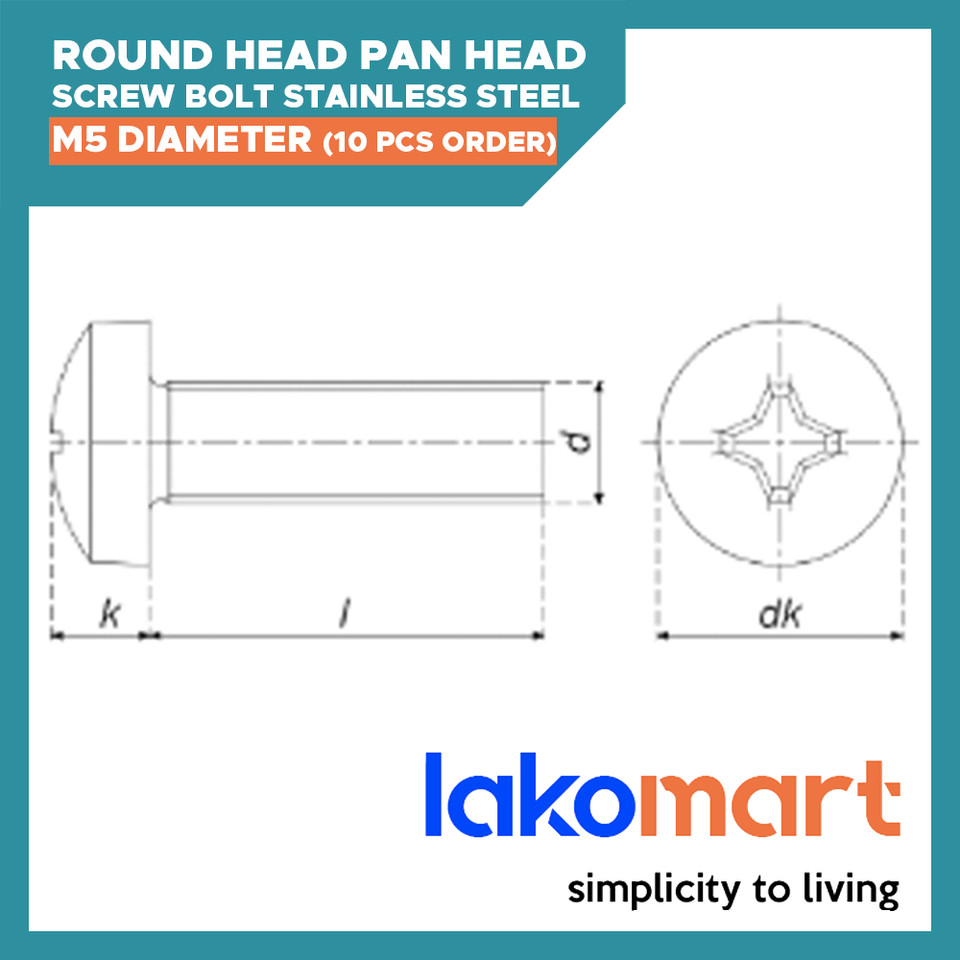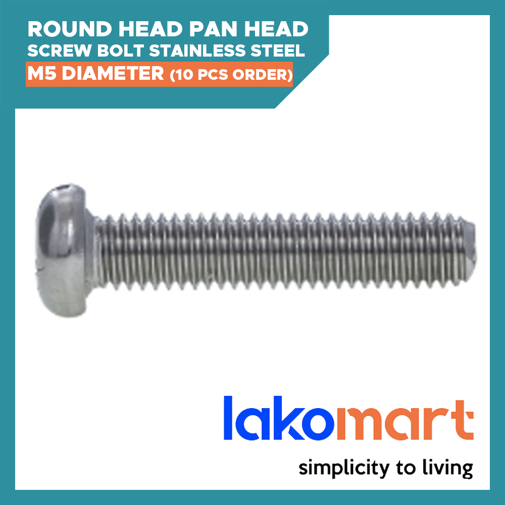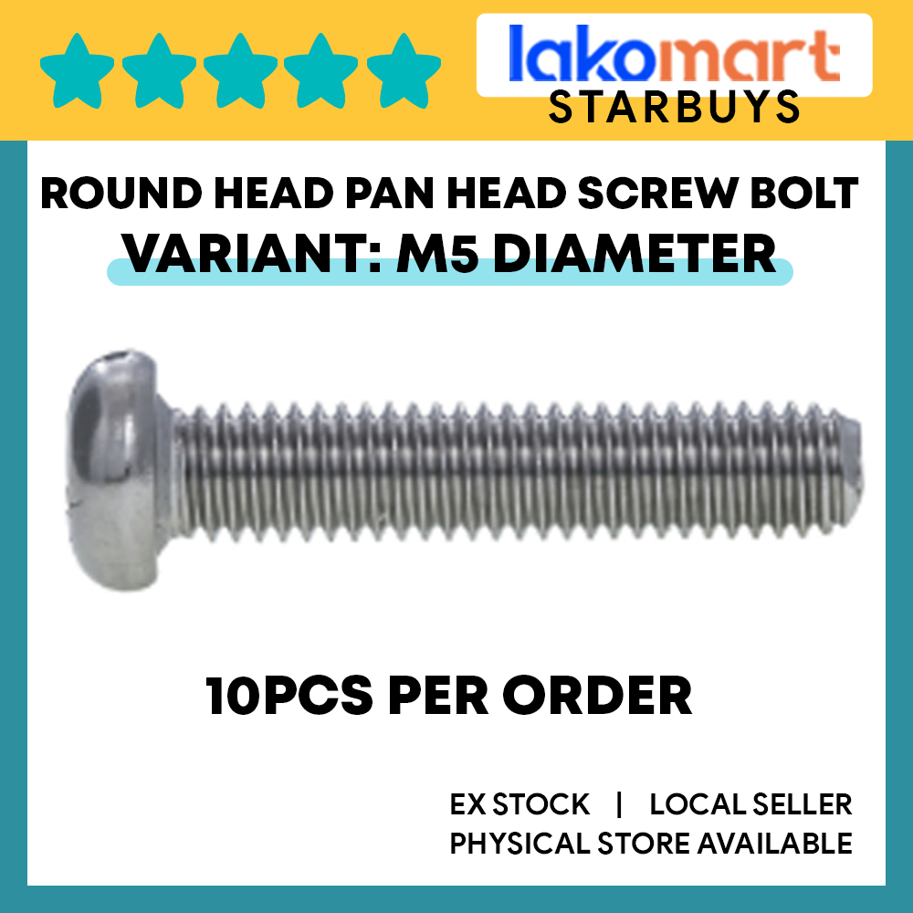 M5 Diameter Stainless Steel Plus/ Cross/ Philips Head Round Head Pan Head Screw Bolt (10pcs per order)