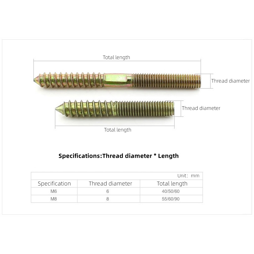 M6 M8 Color Zinc Hanger Bolt Double Headed Bolt Self-Tapping Screw For Sofa Furniture Connection Fastener Hardware
