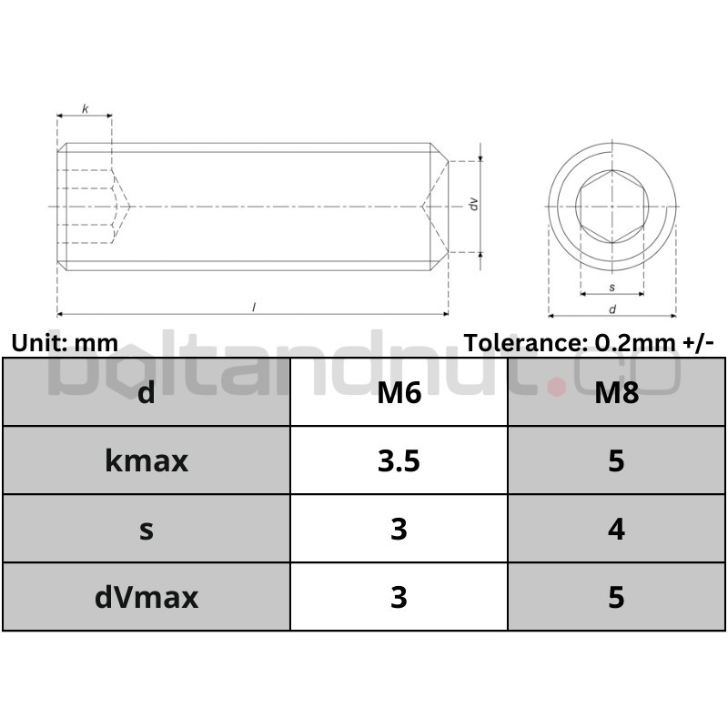 M6 M8 Hex Socket Set Screw / Grub Screw DIN916 | Alloy Steel Grade 12.9 | Black Oxide | Skru Allen Key Screw