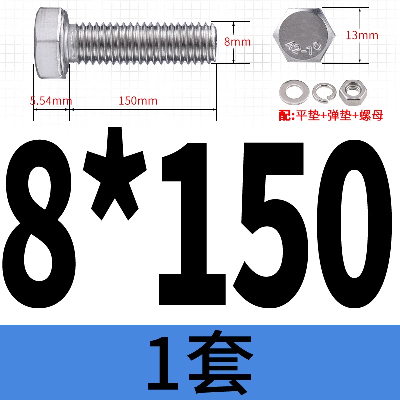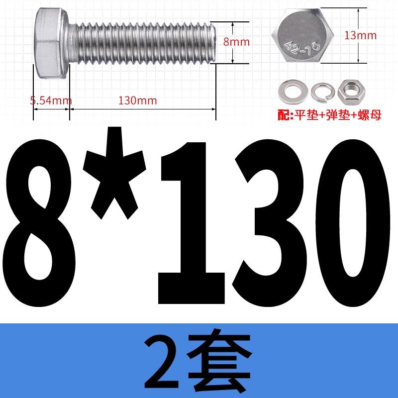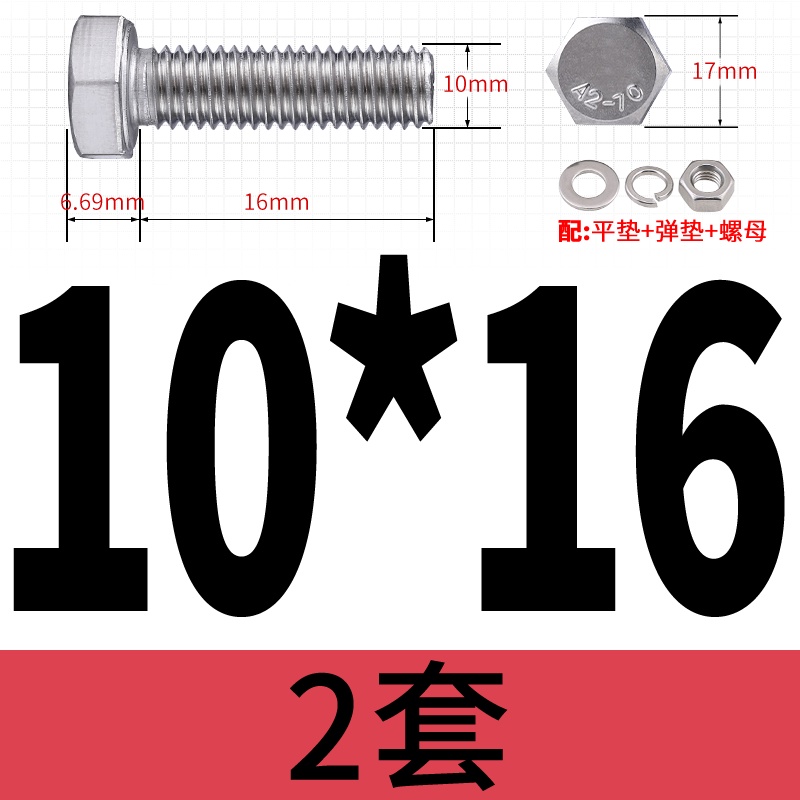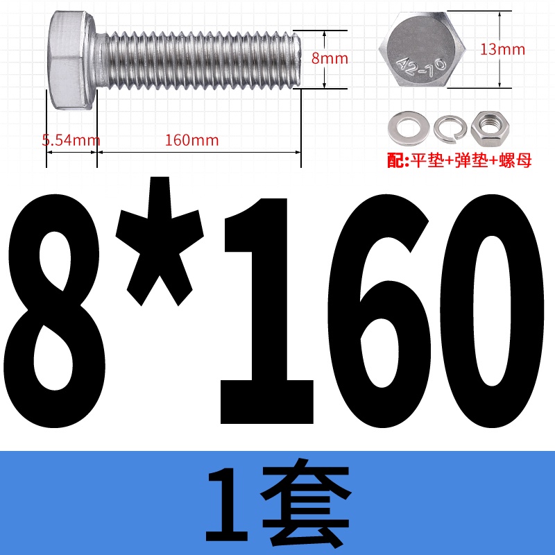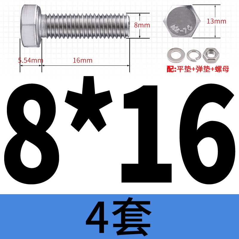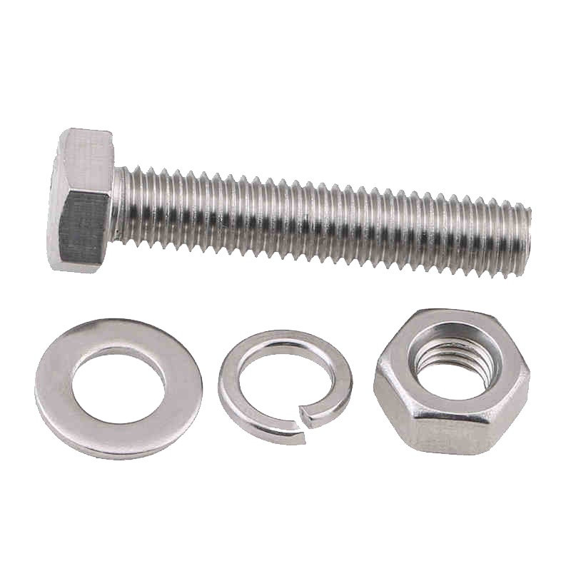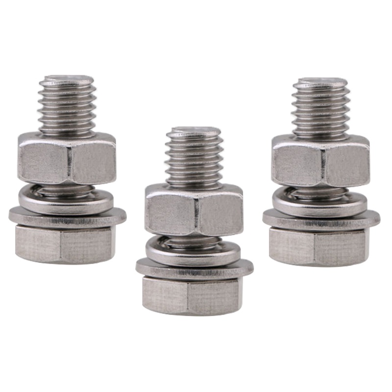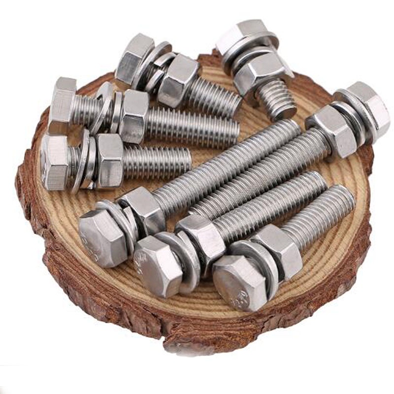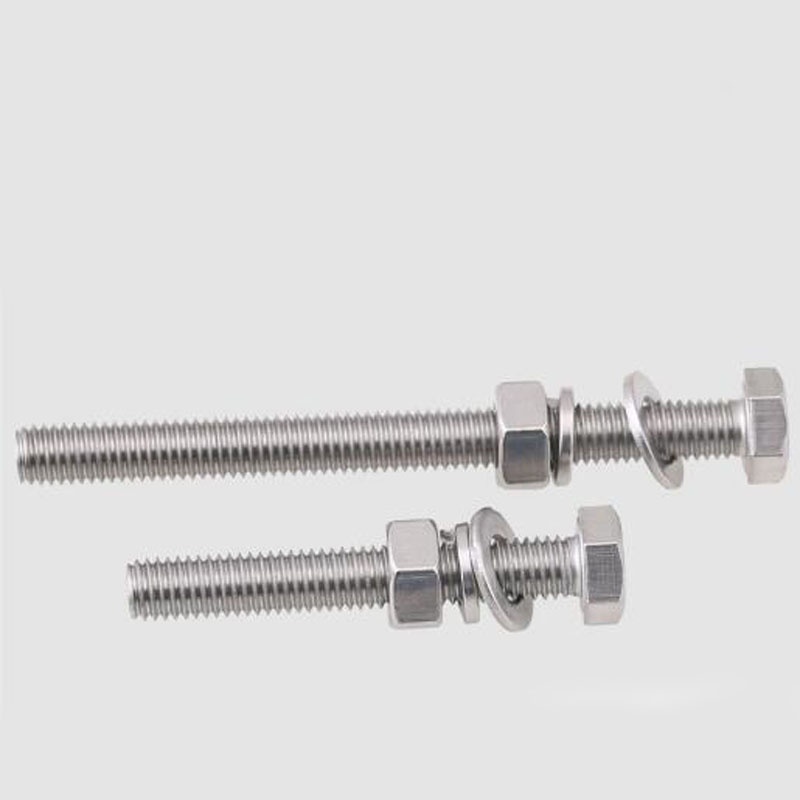 M8 M10 304 Stainless Steel Outer Hexagonal Bolt Screw Nut Flat Spring Washer Set Outer Hexagonal Extended Scre