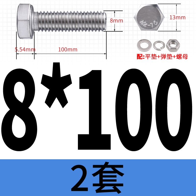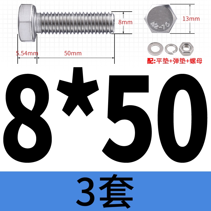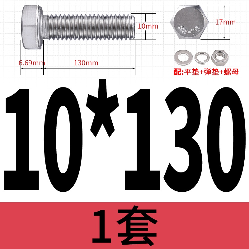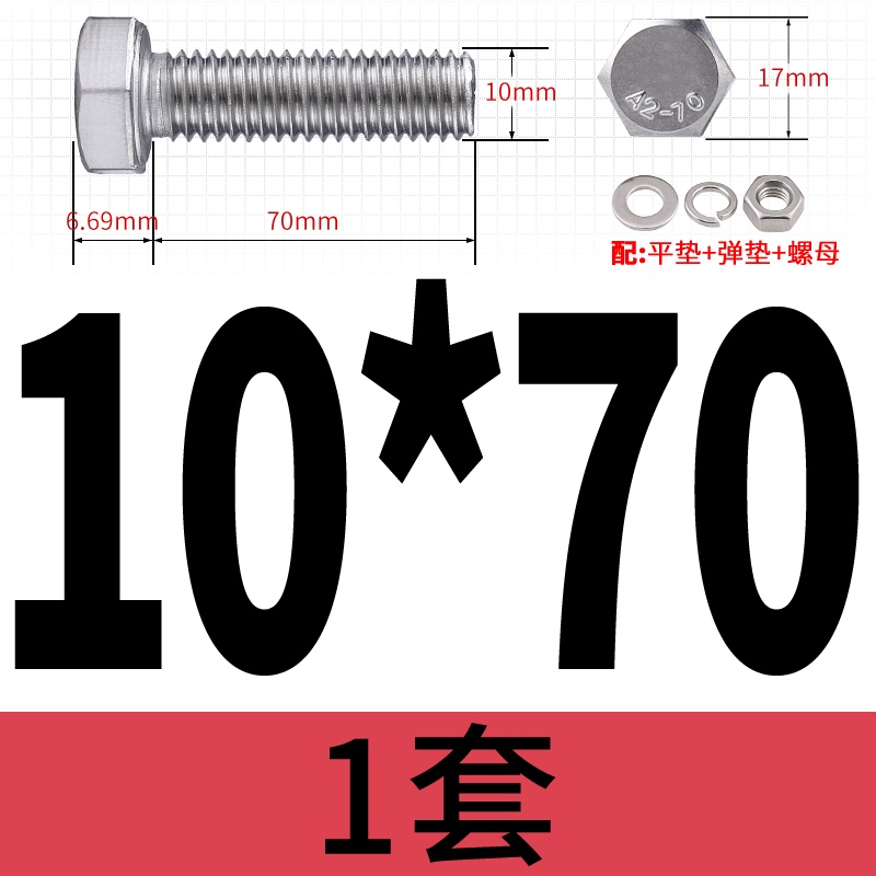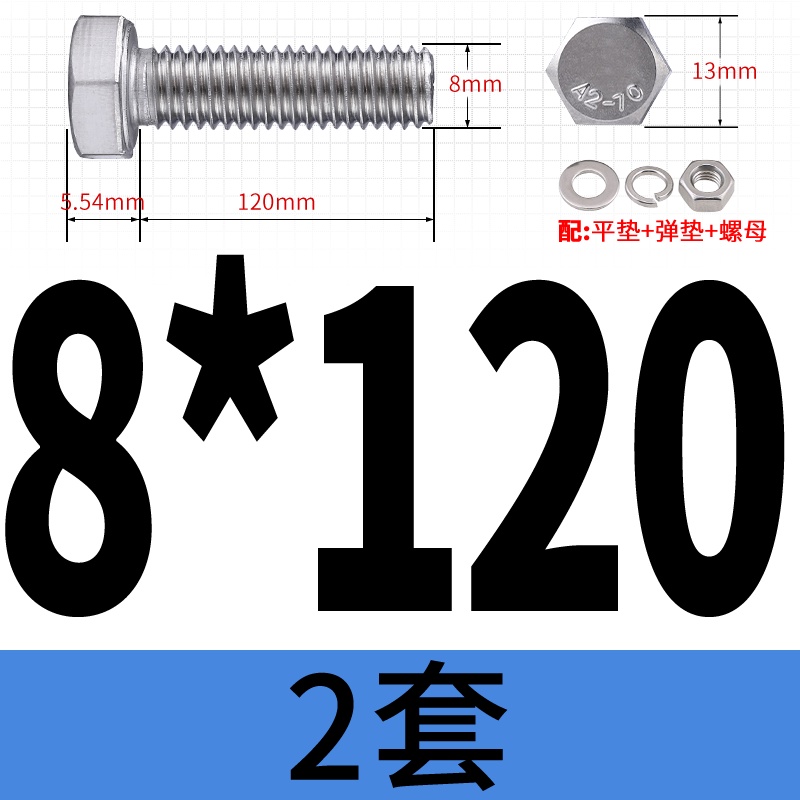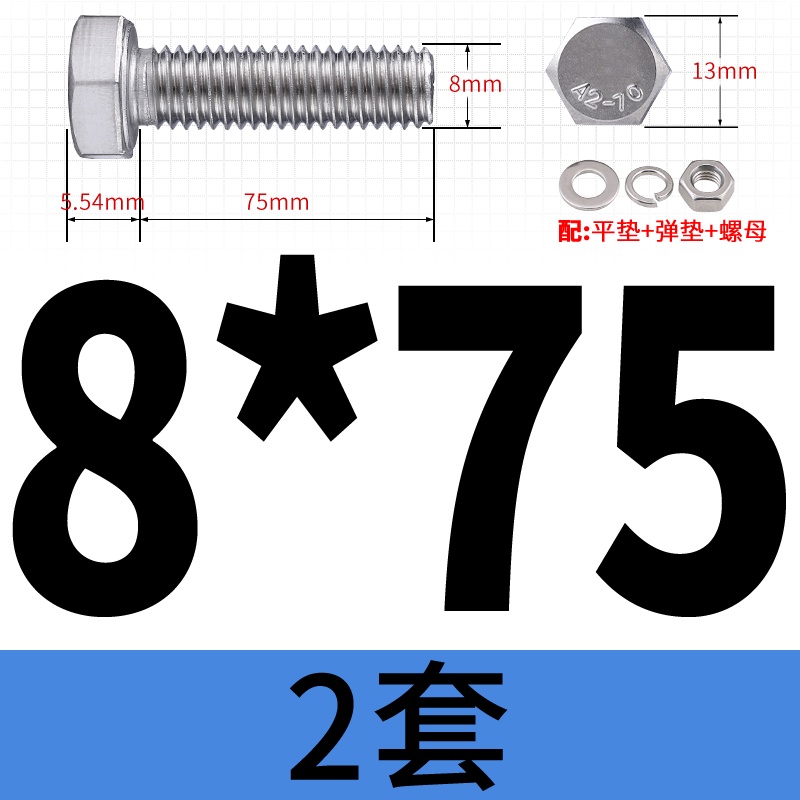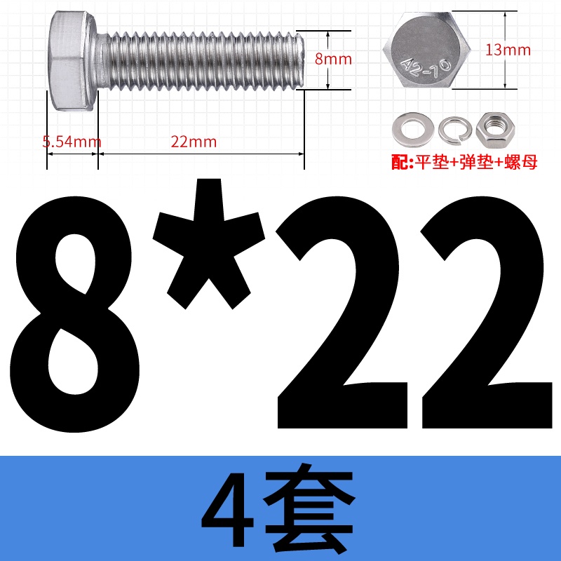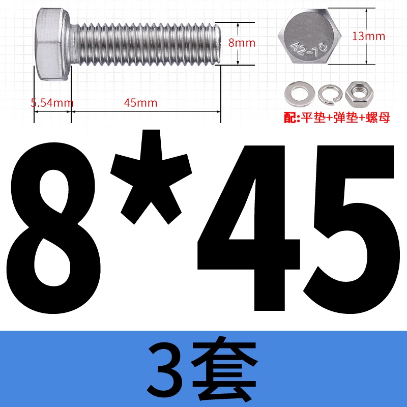 M8 M10 304 Stainless Steel Outer Hexagonal Bolt Screw Nut Flat Spring Washer Set Outer Hexagonal Extended Scre