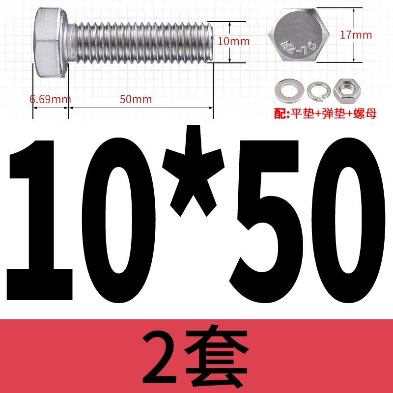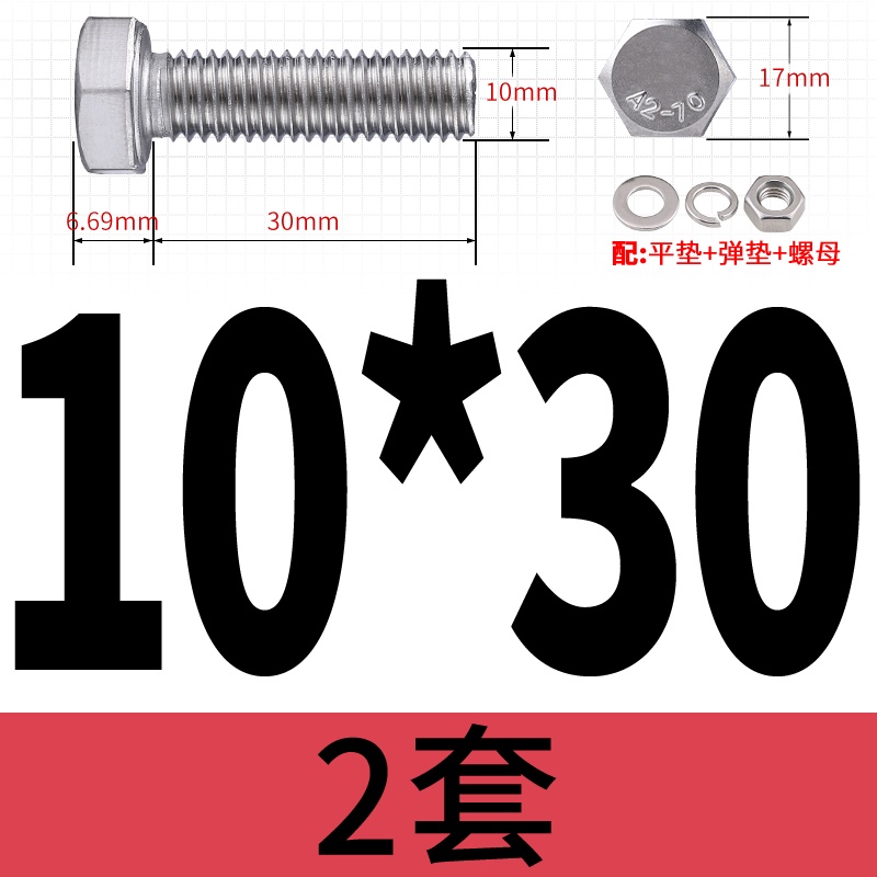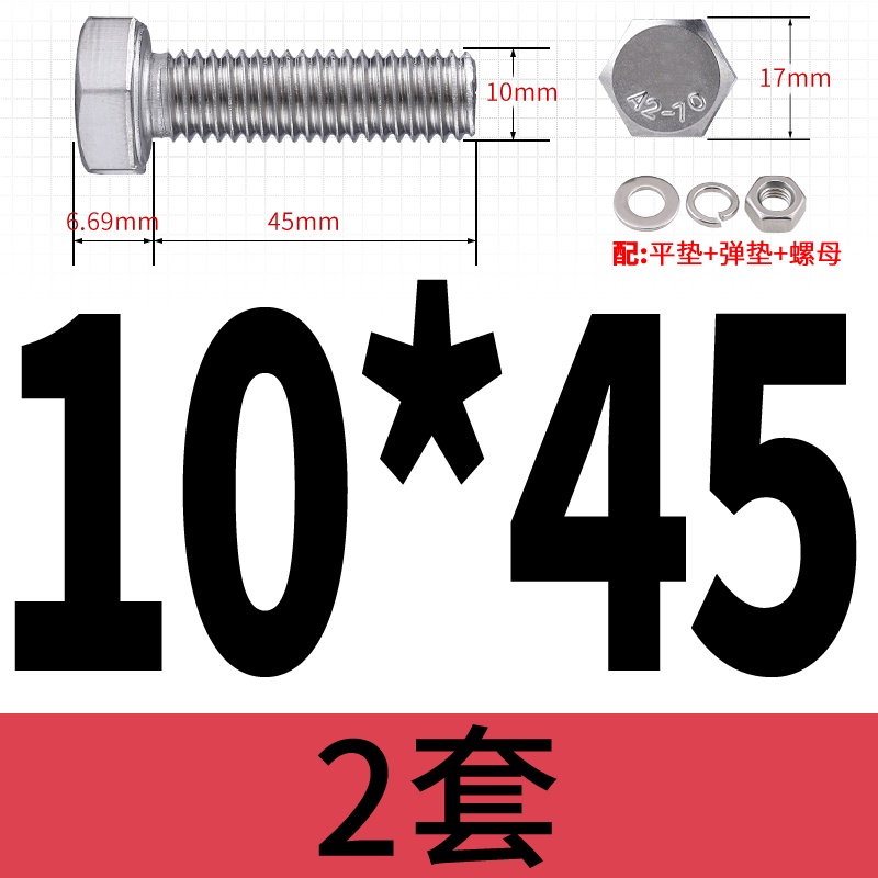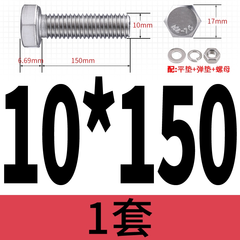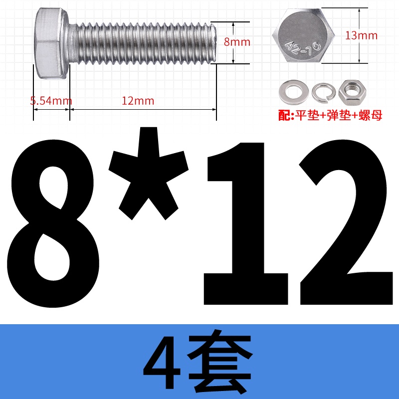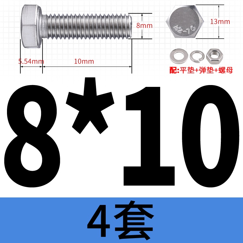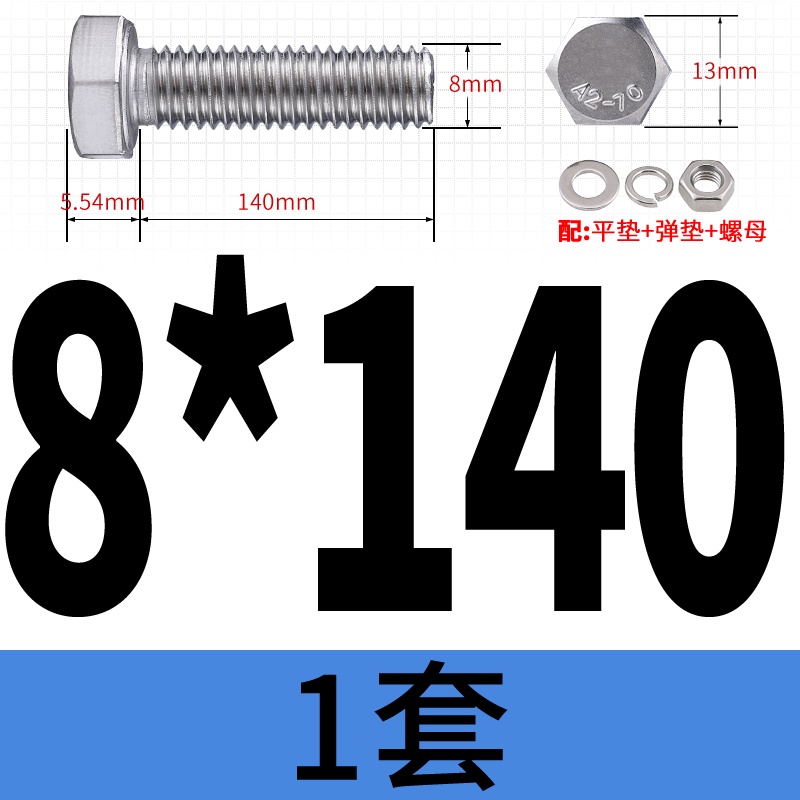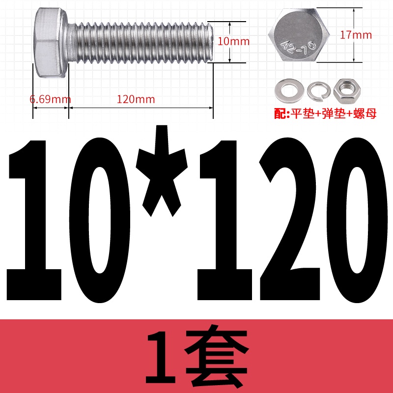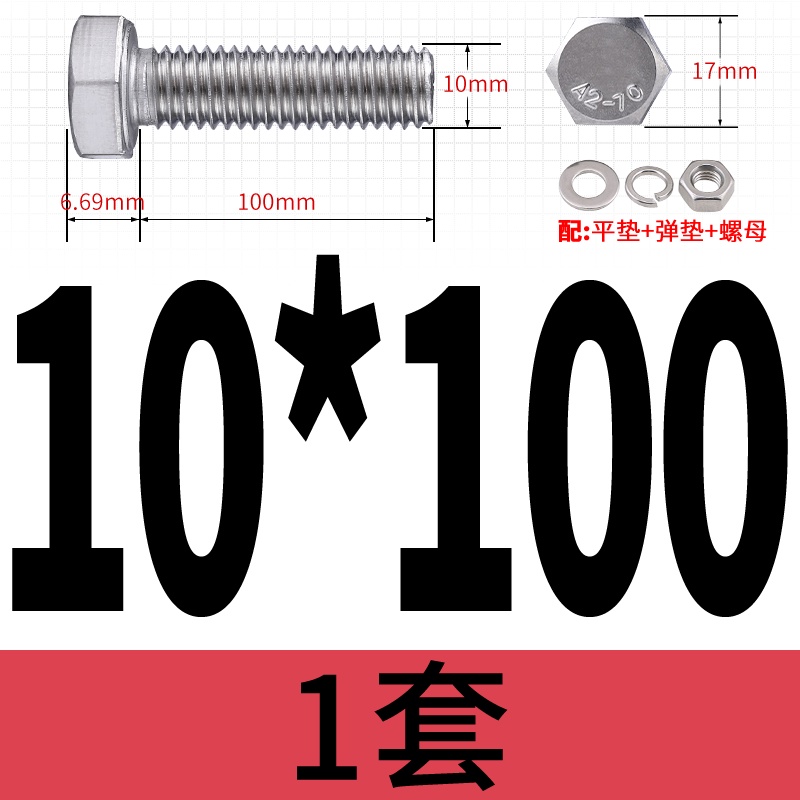 M8 M10 304 Stainless Steel Outer Hexagonal Bolt Screw Nut Flat Spring Washer Set Outer Hexagonal Extended Scre