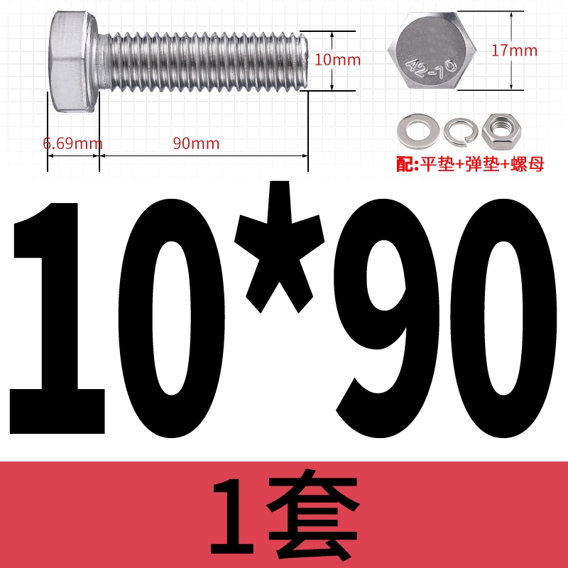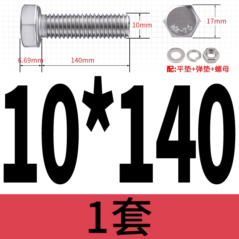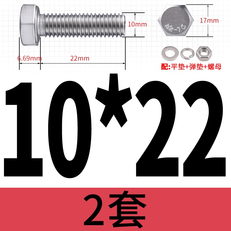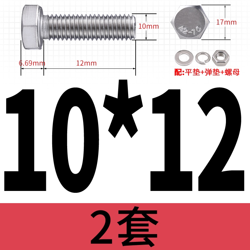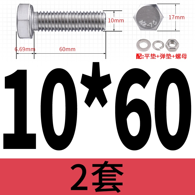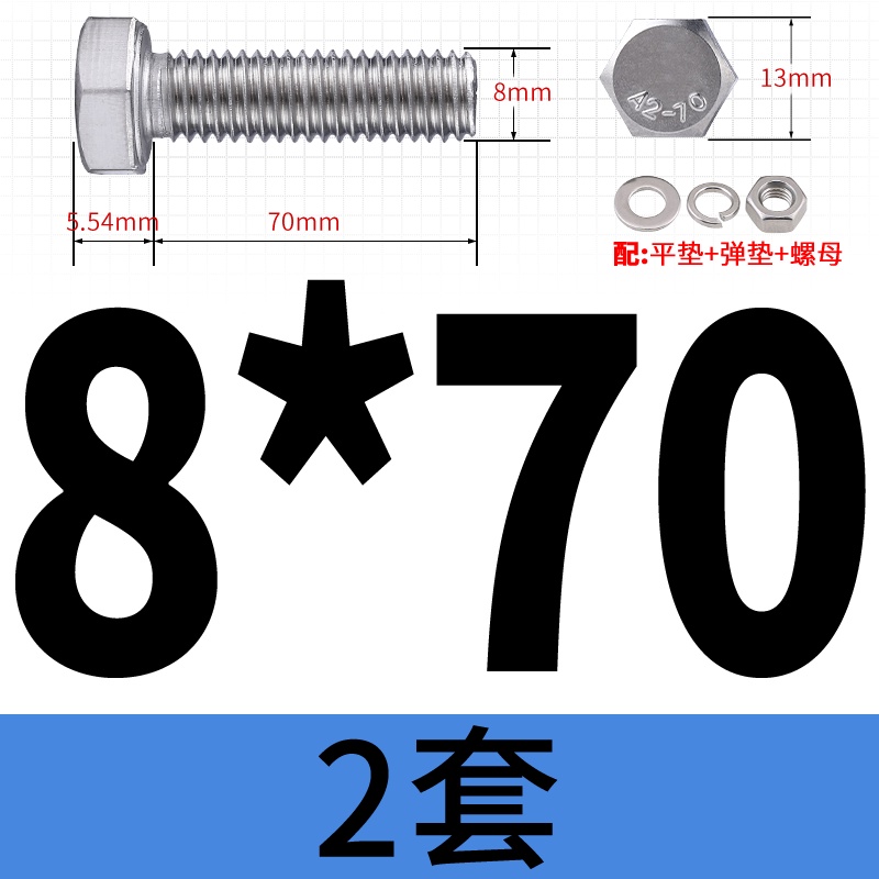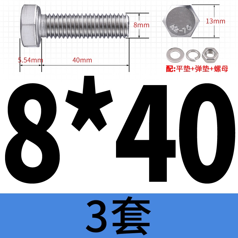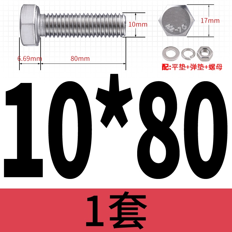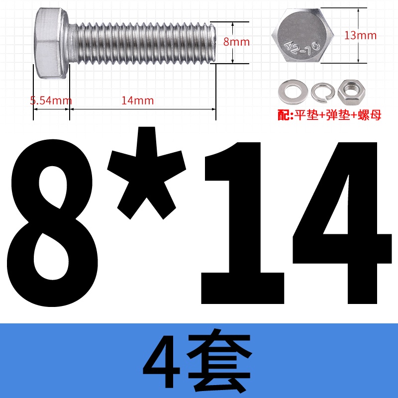 M8 M10 304 Stainless Steel Outer Hexagonal Bolt Screw Nut Flat Spring Washer Set Outer Hexagonal Extended Scre
