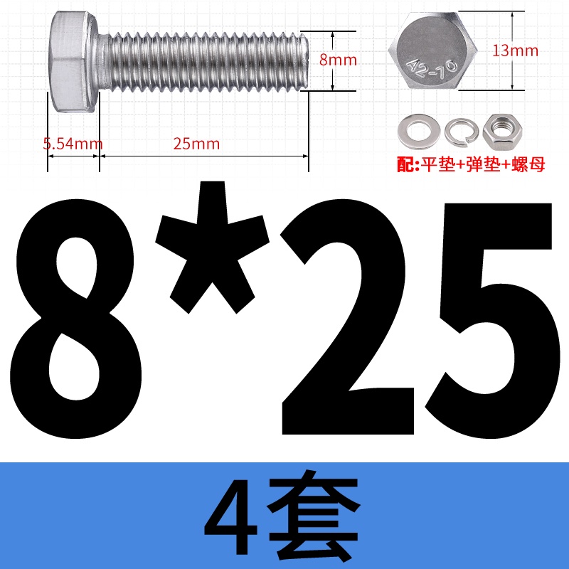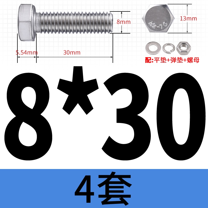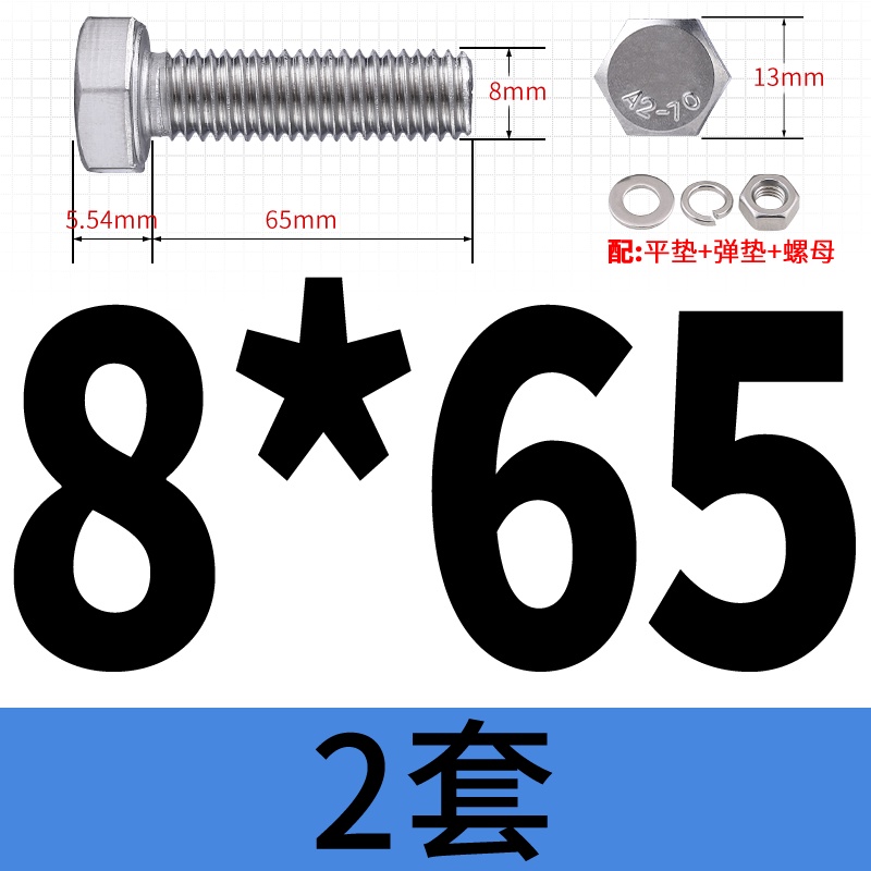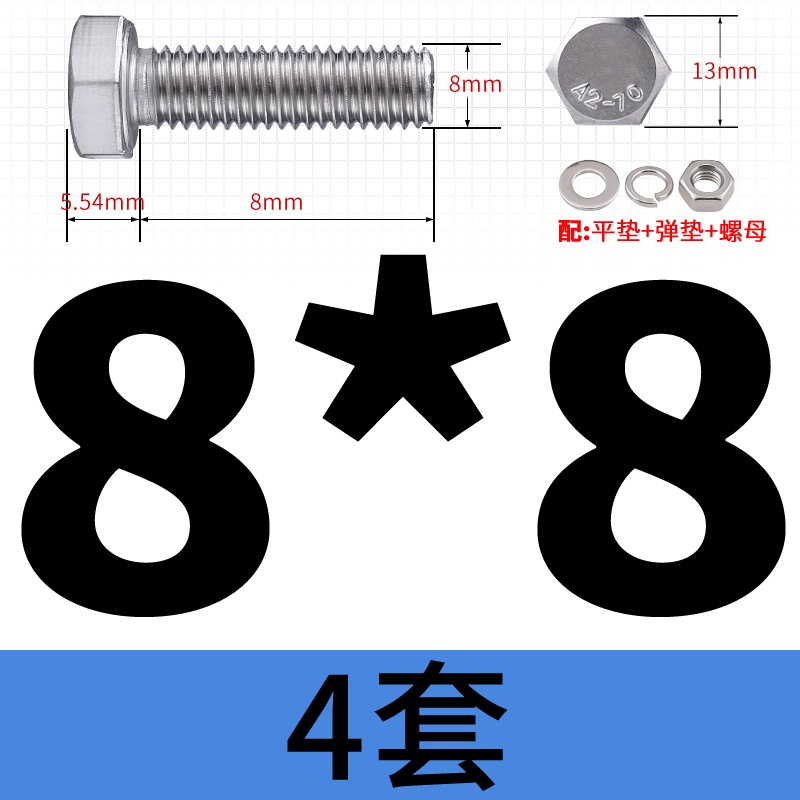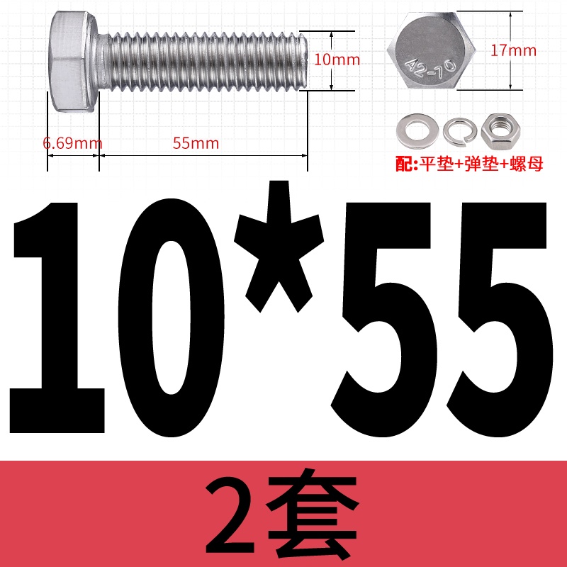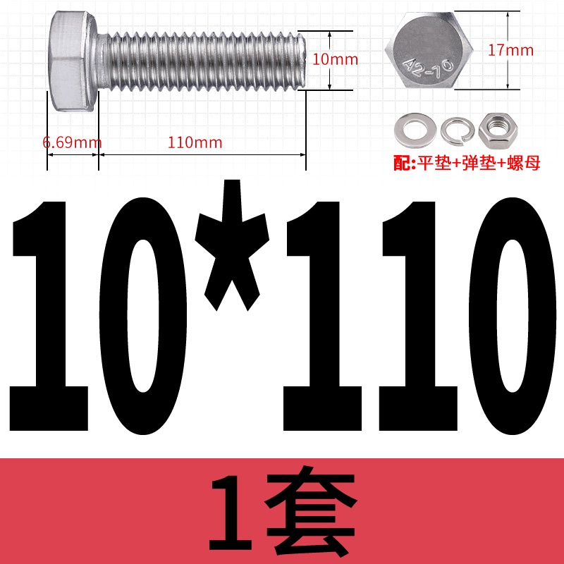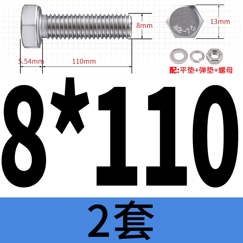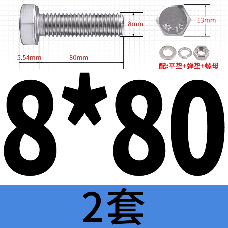 M8 M10 304 Stainless Steel Outer Hexagonal Bolt Screw Nut Flat Spring Washer Set Outer Hexagonal Extended Scre