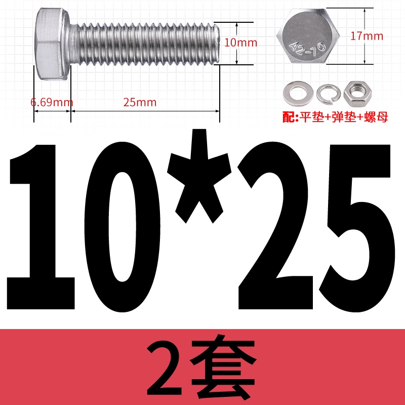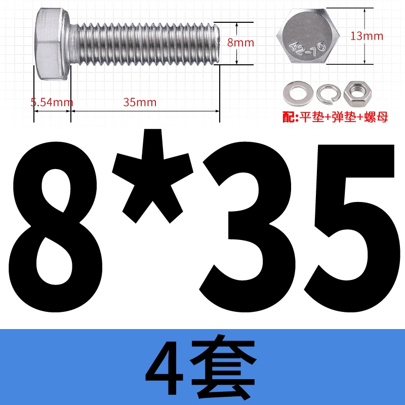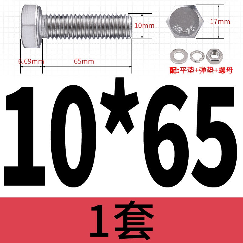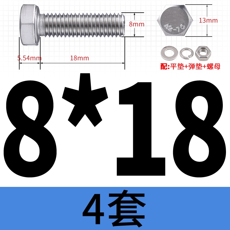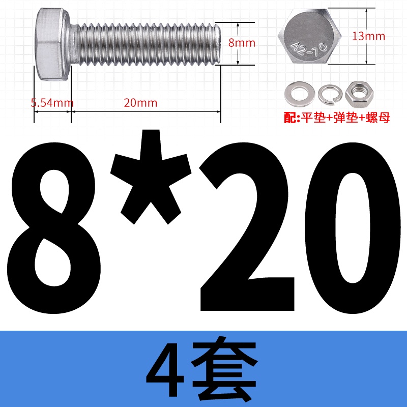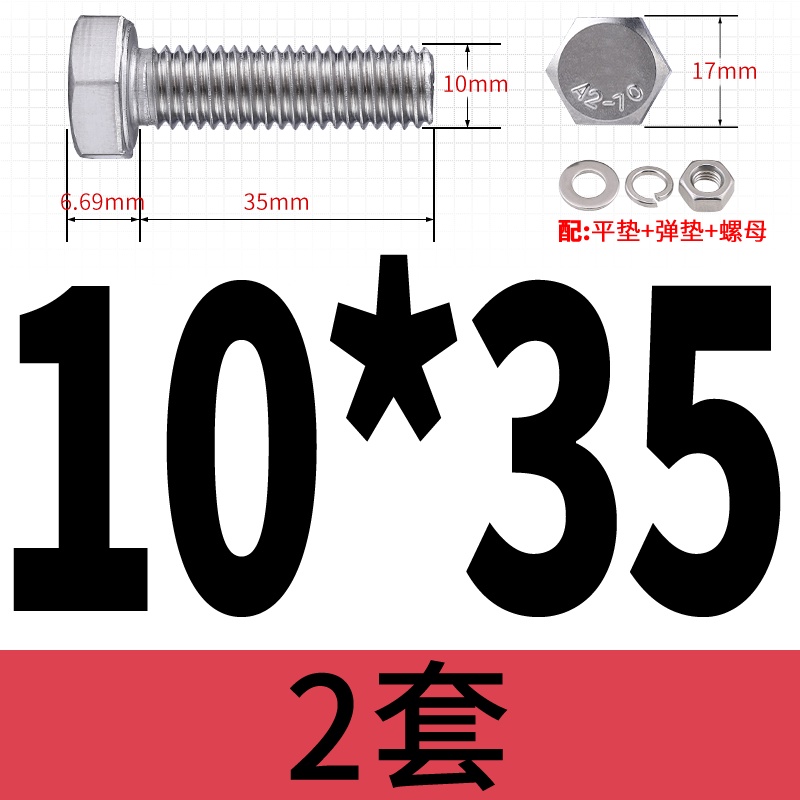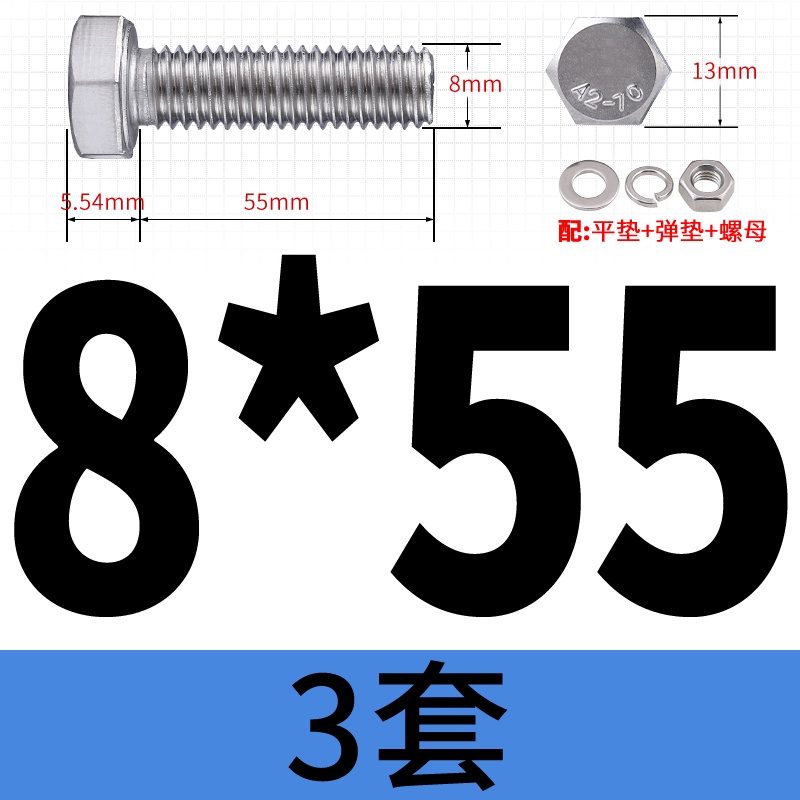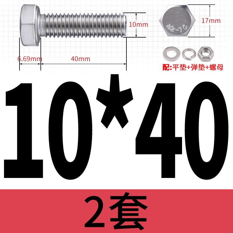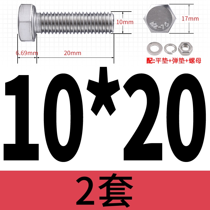 M8 M10 304 Stainless Steel Outer Hexagonal Bolt Screw Nut Flat Spring Washer Set Outer Hexagonal Extended Scre