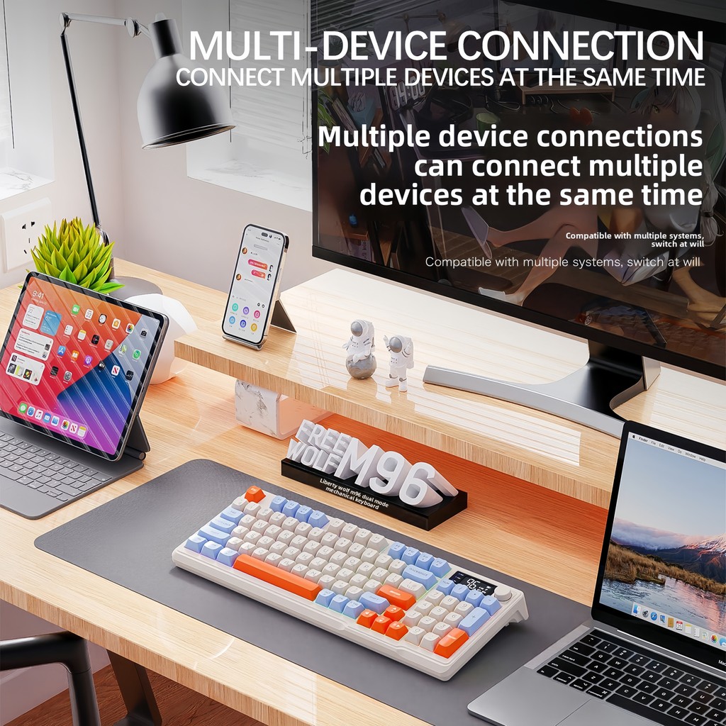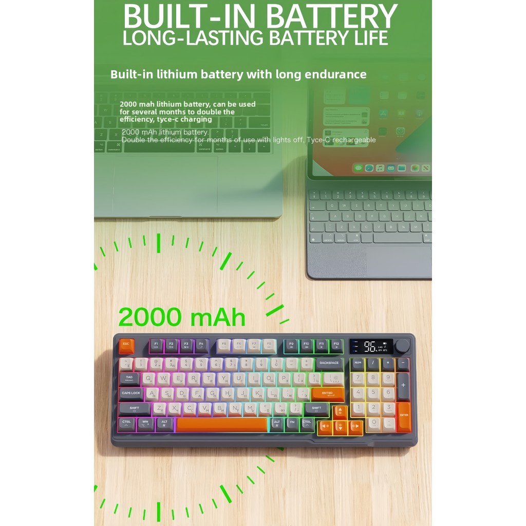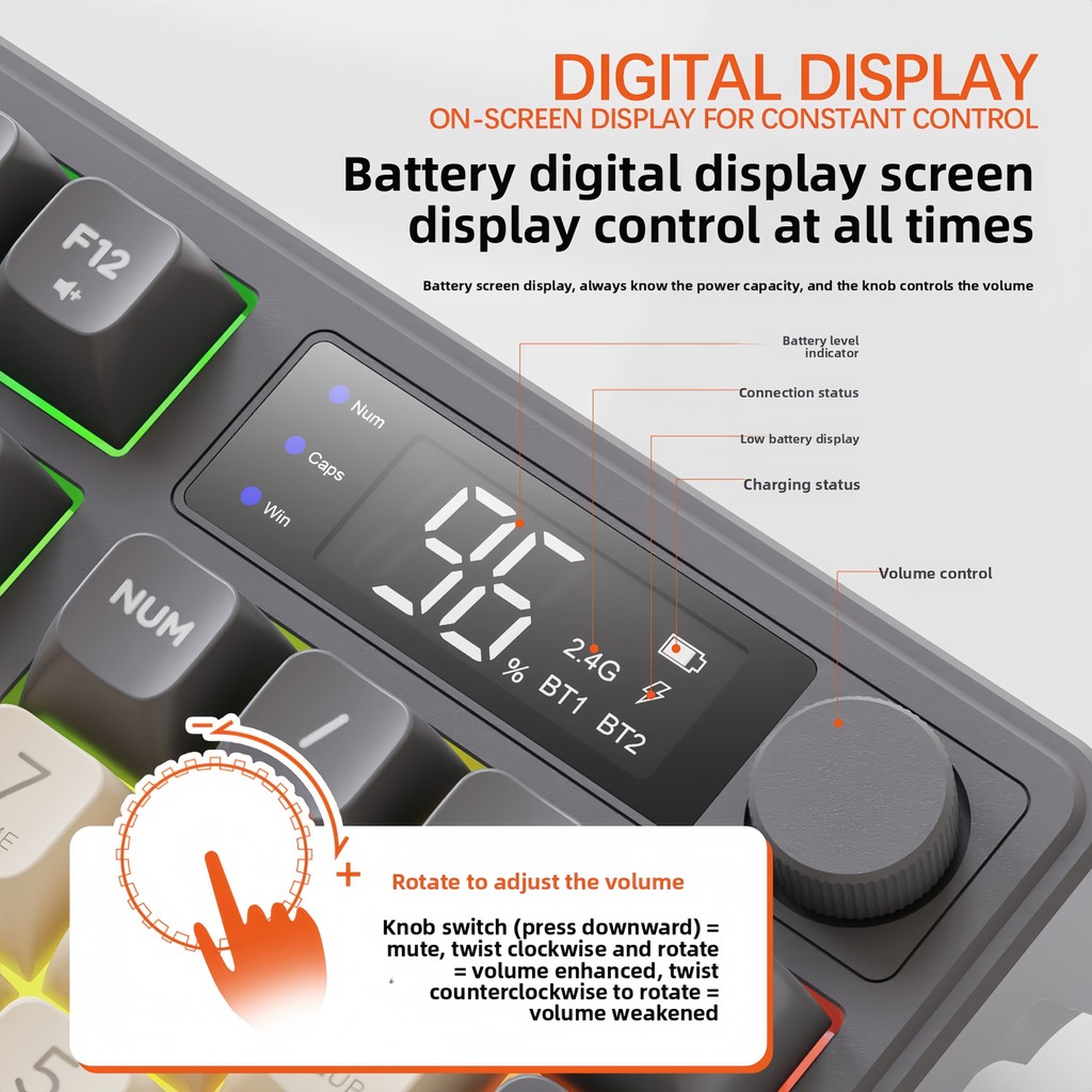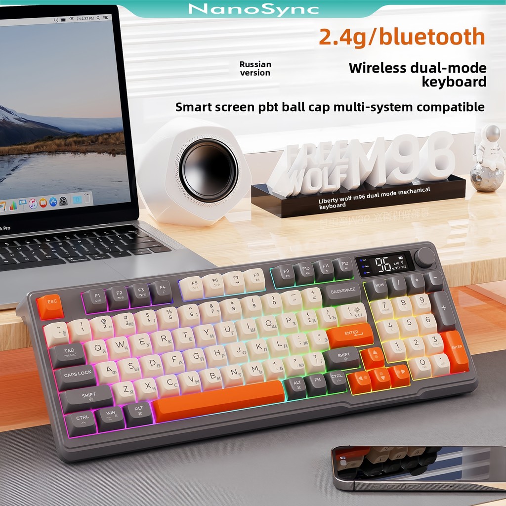 M96 Russian wireless Bluetooth dual-mode Russian keyboard PBT ball cap display Bluetooth keyboard Gaming keyboard
