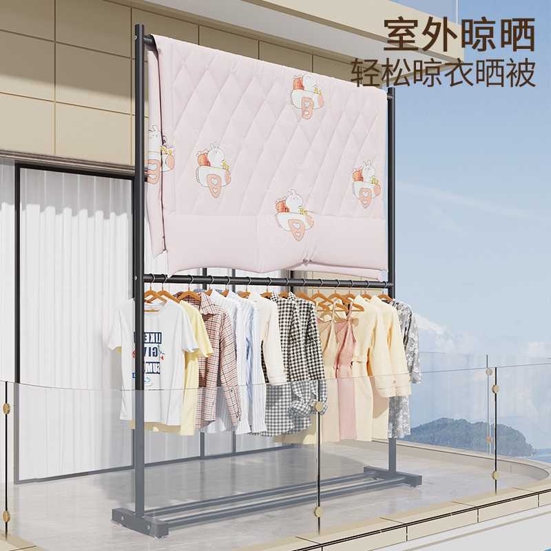 MA Home Single / Double Pole Clothes Hanging Rack Cloth Hanger Living Room Balcony Cloth Rack