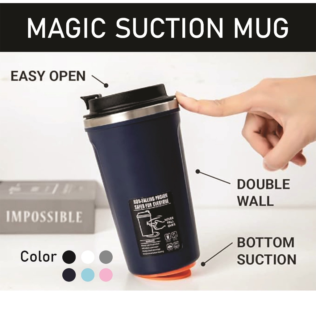 MAGIC SUCTION MUG Hefty No Knock Spill Travel Coffee Cup 500ML 304 Stainless Steel