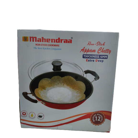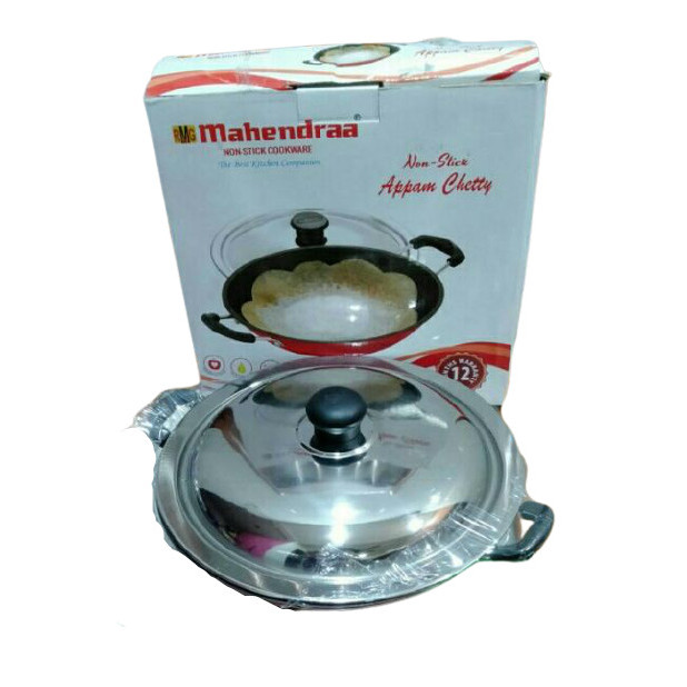 MAHENDRAA Extra Deep Non Stick Appam Chetty Pan with Lid – Appa Chatty Appam Maker Breakfast Nonstick Pan