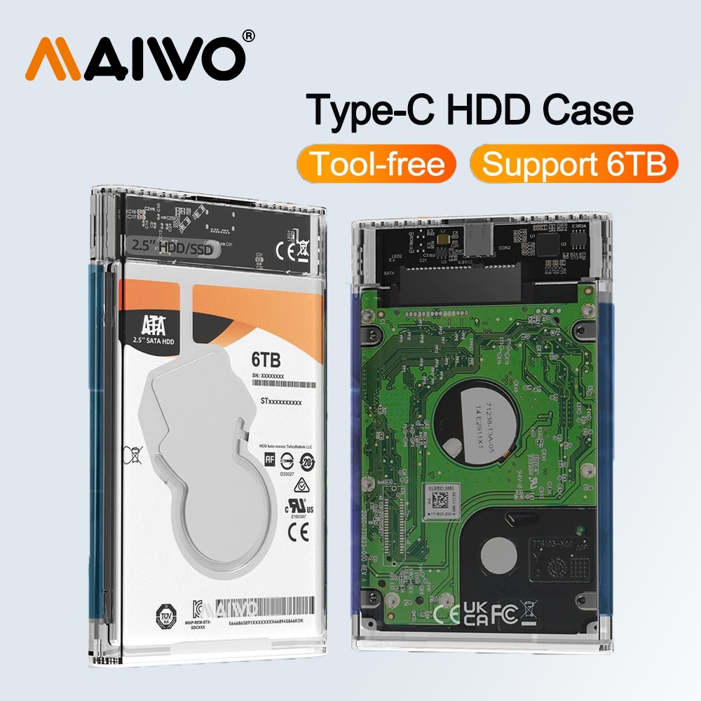 MAIWO 2.5'' HDD Enclosure SATA to USB3.0 External Hard Drive Case Type-C 5Gbps 2.5 Inch Hard Drive Enclosure