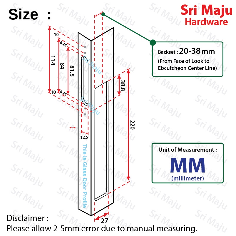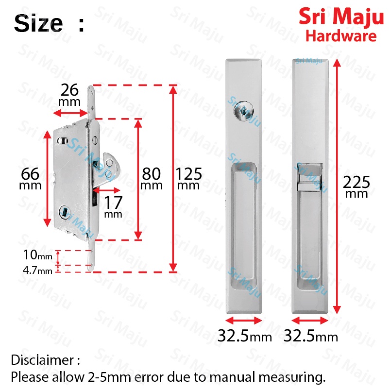 MAJU SGL-J6 Quality Sliding Glass Door Handle Lock Silver Brown Entrance Slide Door Hook Lock Kunci Pintu Kaca Tarik J6