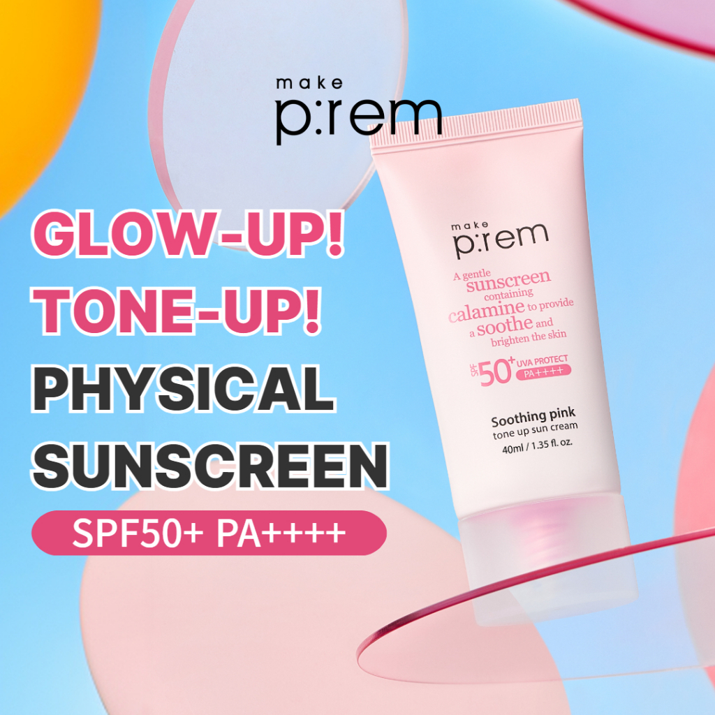 MAKE PREM Soothing Pink Tone Up Face Sunscreen Sunblock 50ml(Physical Sunscreen)