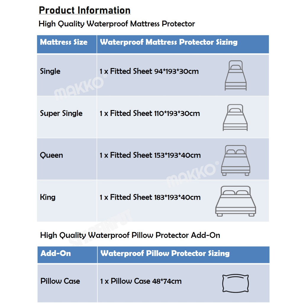 MAKKO High Quality Waterproof Mattress Protector | Fitted Sheet