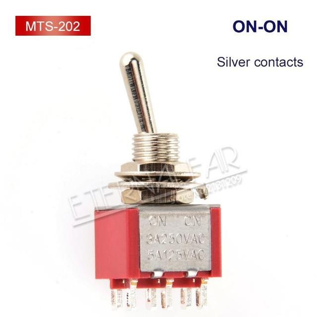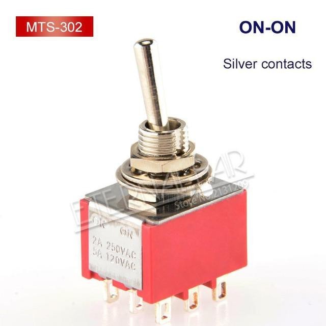 MCXK-E 1PCS/LOT SPDT DPDT 6MM Reset Latching Toggle Switch MTS-102 5A 6A 125V 3A 250 AC Mini 3 6PIN ON-ON ON-OFF-ON Rocker Switch Lights Motors