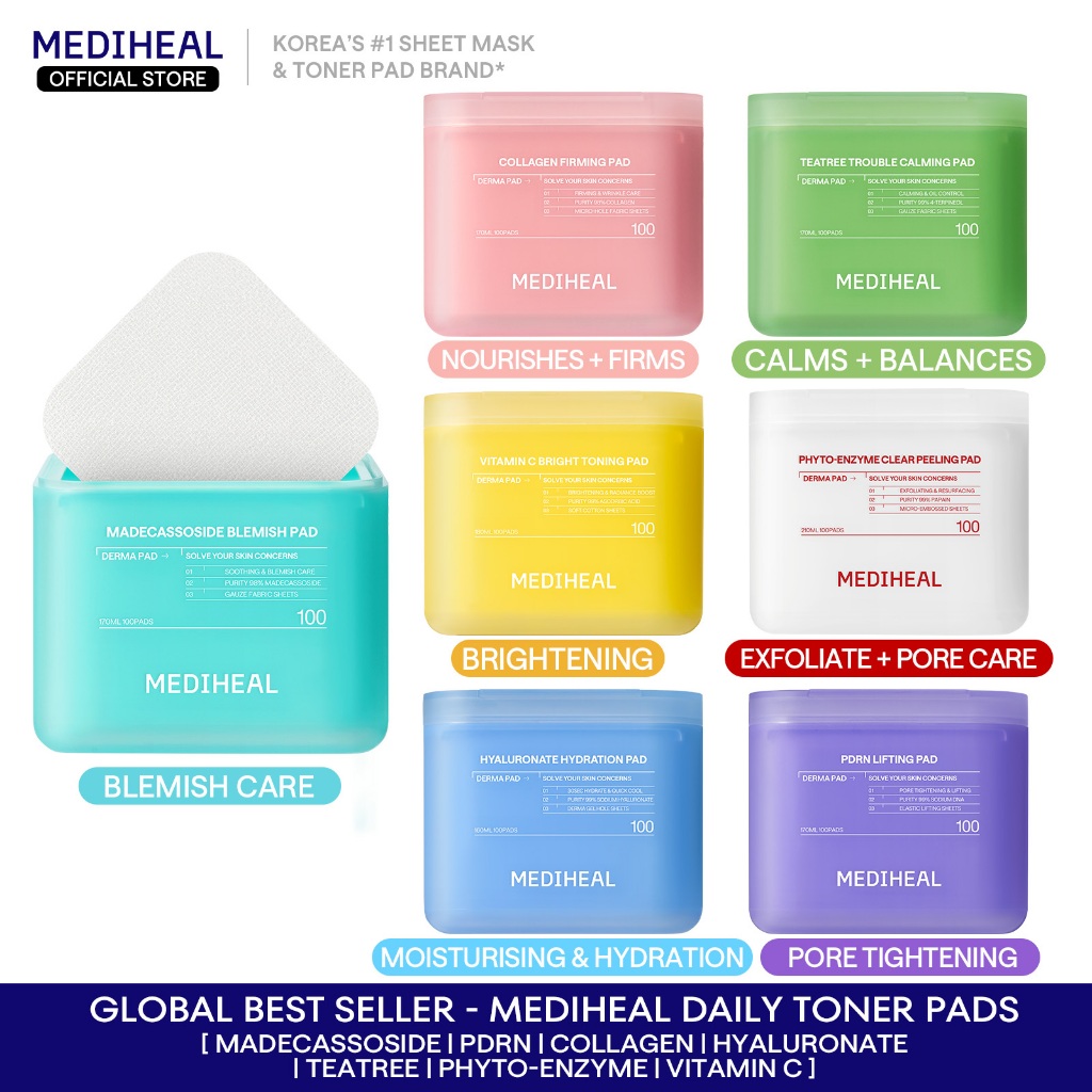 MEDIHEAL NEW Daily Toner Pad 2.0 [ Madecassoside | Collagen | Teatree | Vitamin C | Phyto-enzyme| Hyaluronate|PDRN]-100p