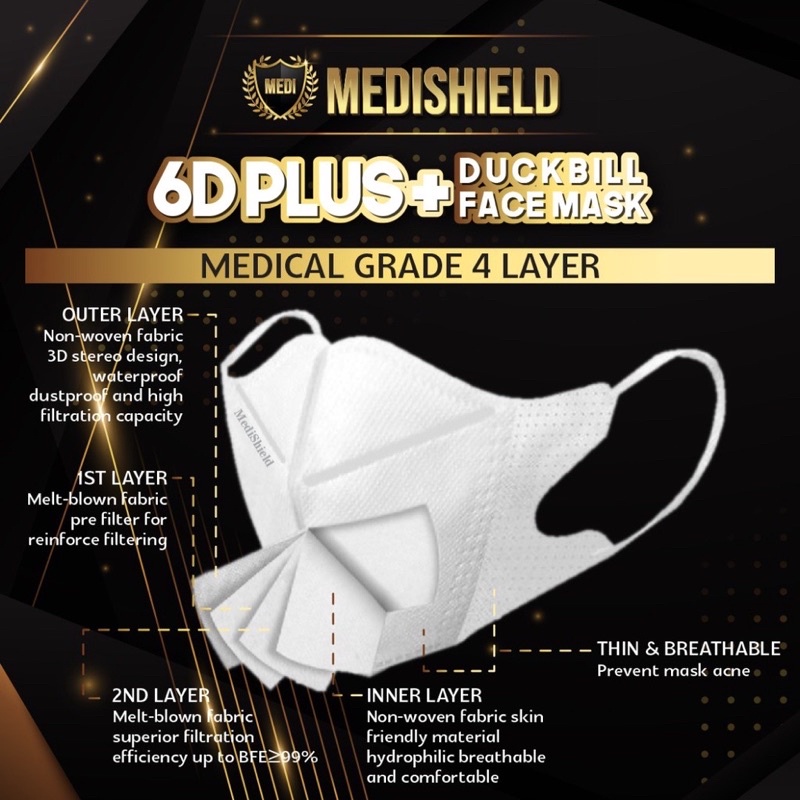MEDISHIELD 6D PLUS DUCKBILL MASK EARLOOP 10pcs/Pack Medical 4Ply Adult 3D Duckbill Mask duckbill Medical Face Mask