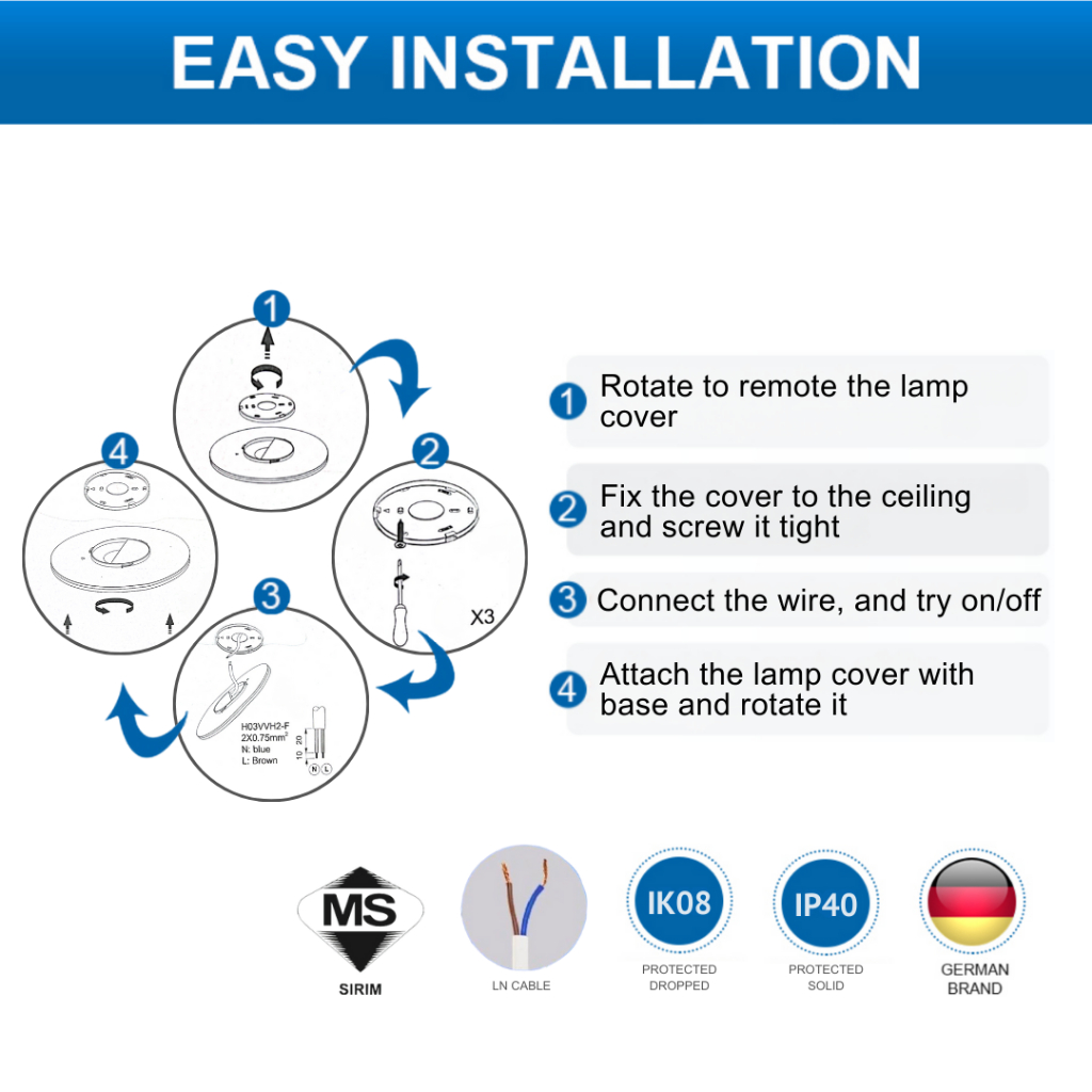 MEGAMAN Ceiling LED 24/36W Switch Dimming 3 in 1 Colour Lampu Syiling Ceiling Round Light Surface Ceiling Light