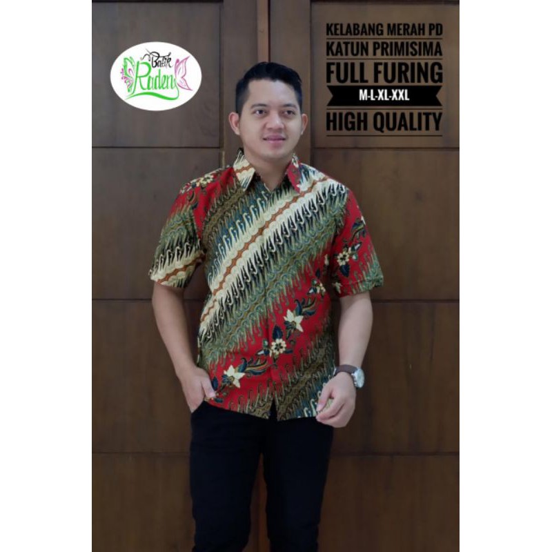 MERAH KEMEJA Men's batik Centipede Red batik full batik Shirt premium solo batik