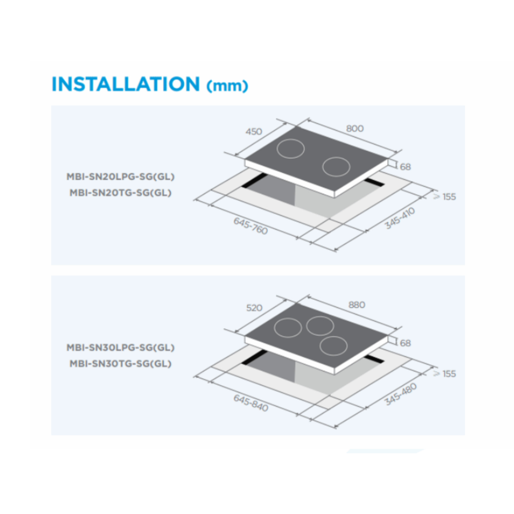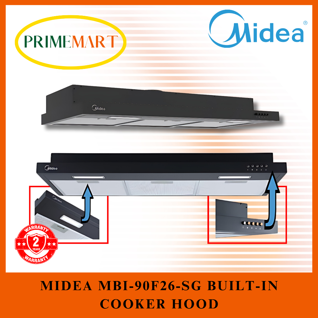 MIDEA MBI-90F26-SG BUILT-IN COOKER HOOD + MIDEA MBI-SN20 GAS HOB/ MIDEA MBI-SN30 GAS HOB + 2 YEARS WARRANTY