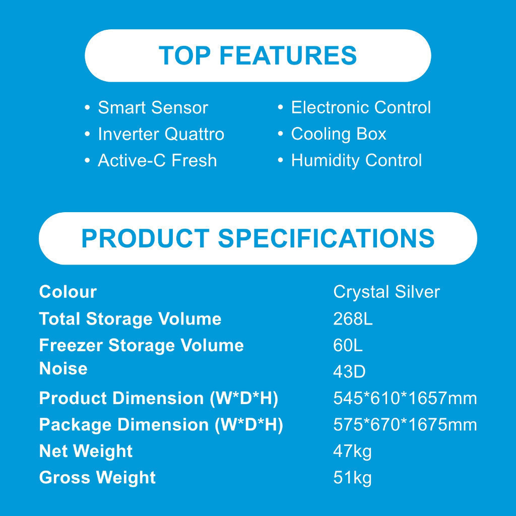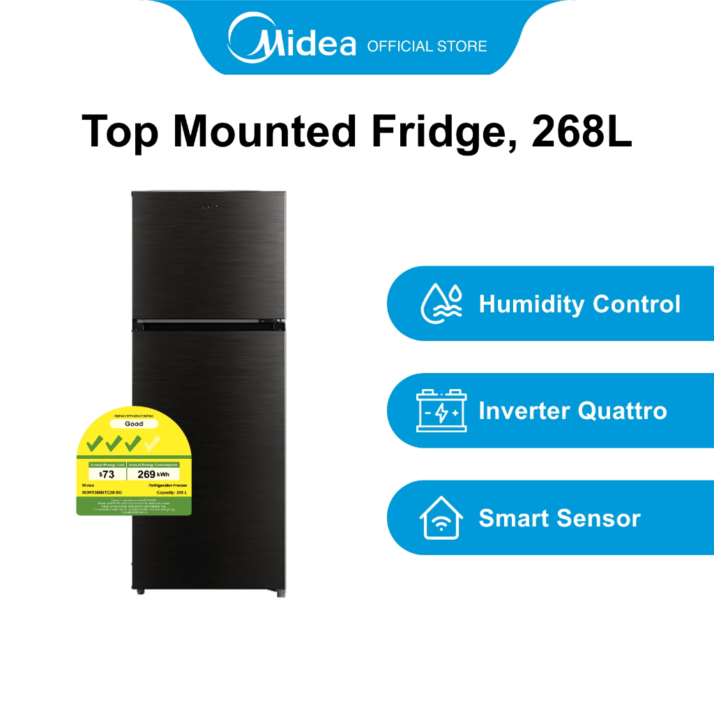 MIDEA MDRT385MTC50-SG / MDRT385MTC28-SG 268L TOP MOUNTED FRIDGE