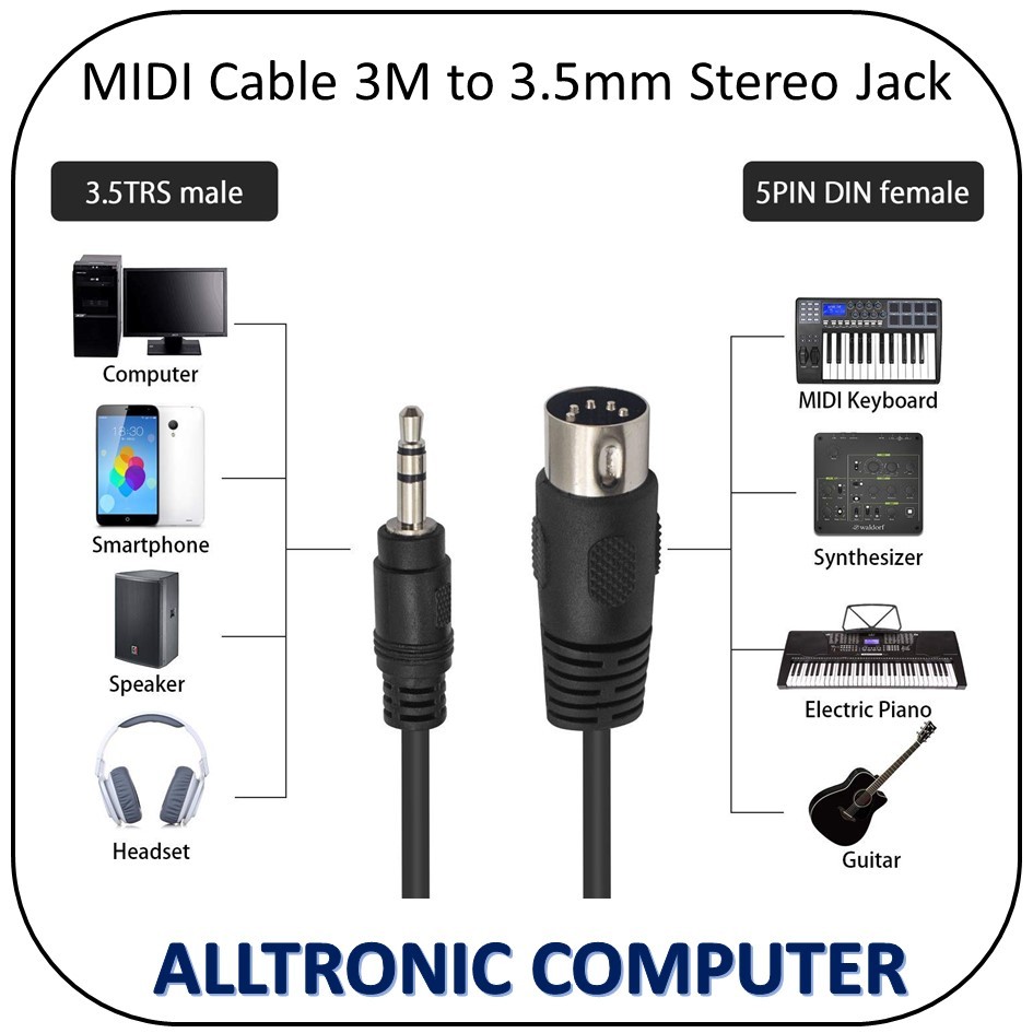 MIDI Cable , 3.5mm Stereo Male Jack to 5 Pin Din plug Converter Audio cable 3Meter