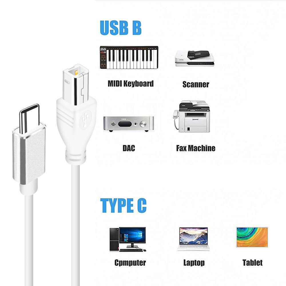 MIDI Cable USB C to USB B Type C to USB 2.0 OTG Printer Scanner Converter Cable Electronic Musical Instrument Piano