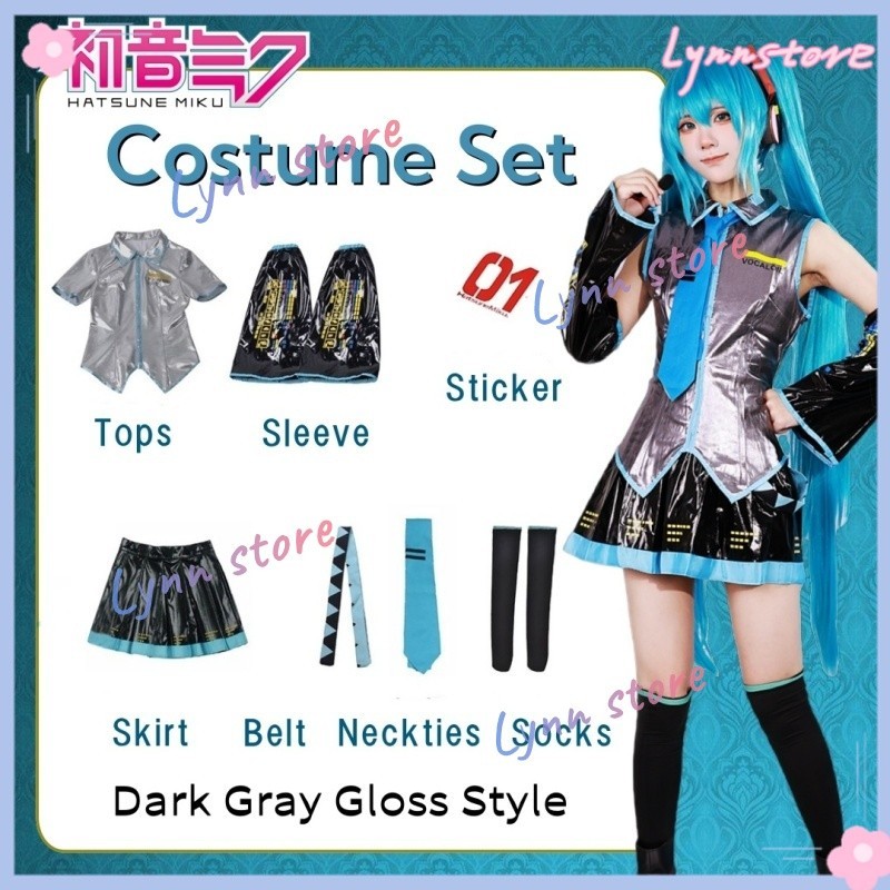MIKU Cosplay HATSUNE MIKU Cosplay Costume Patent Leather Dress+Wig Set Women Role Play Carnival Party Clothes