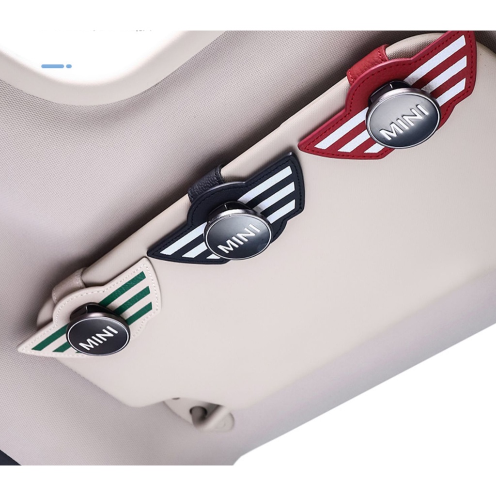 MINI COOPER LOGO metal car logo sun visor glasses clip COUNTRYMAN JCW CLUBMAN F54 F55 F56 F57 F58 F60 R55 R57 R58 R60 interior modified sunglasses business card storage box leather clip