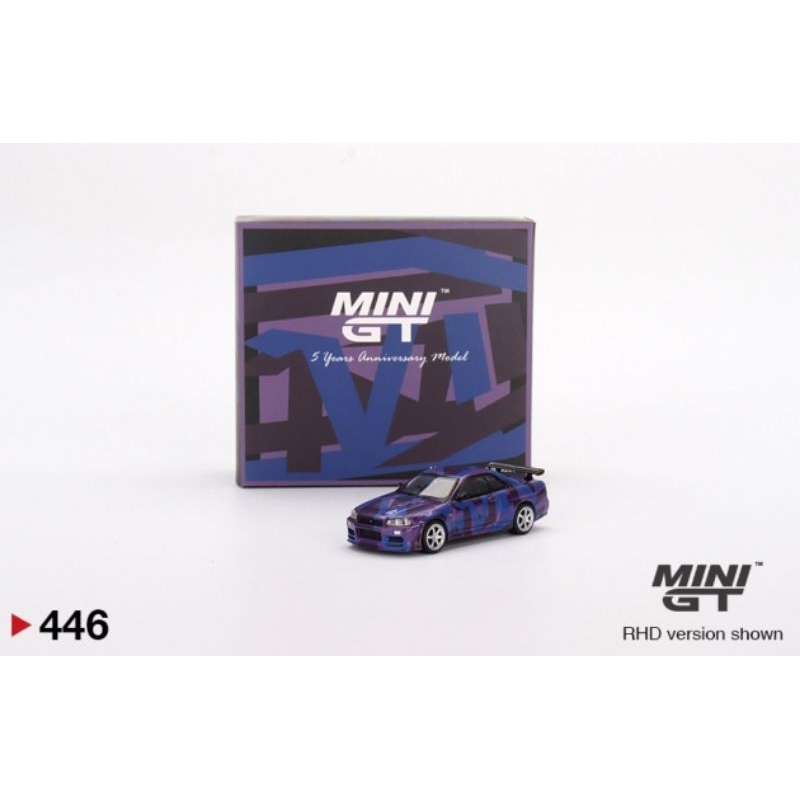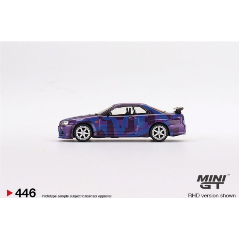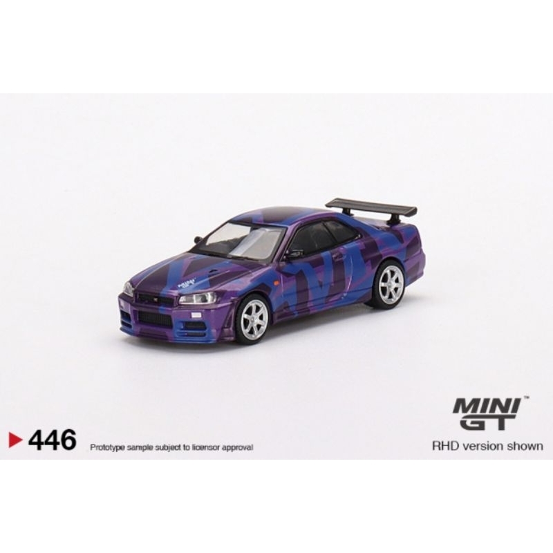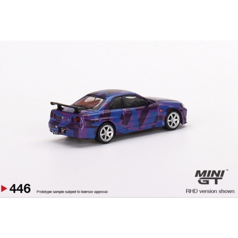 MINI GT #446 1/64 Nissan Skyline GT-R (R34) V-Spec II MINI GT Digital Camouflage Purple
