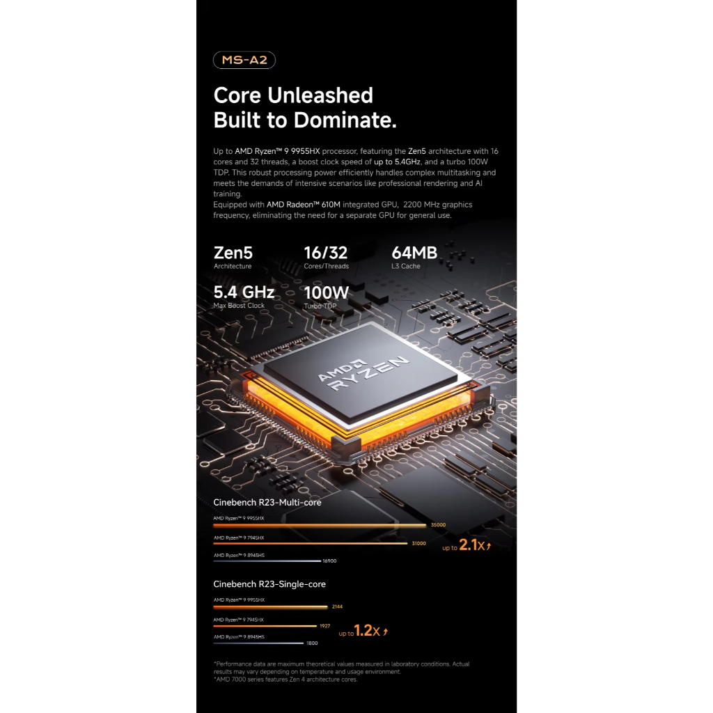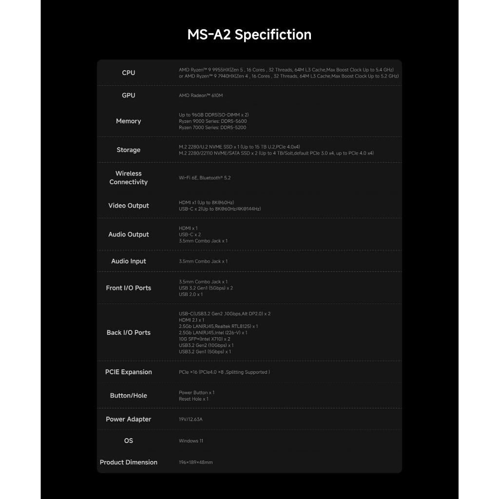 MINISFORUM MS-A2 MINI PC AMD Ryzen 9 7945HX/9955HX Windows 11 Pro Support DDR5 M.2 2280 SSD U.2 NVME Support 10G SFP+ PC Gaming Computer