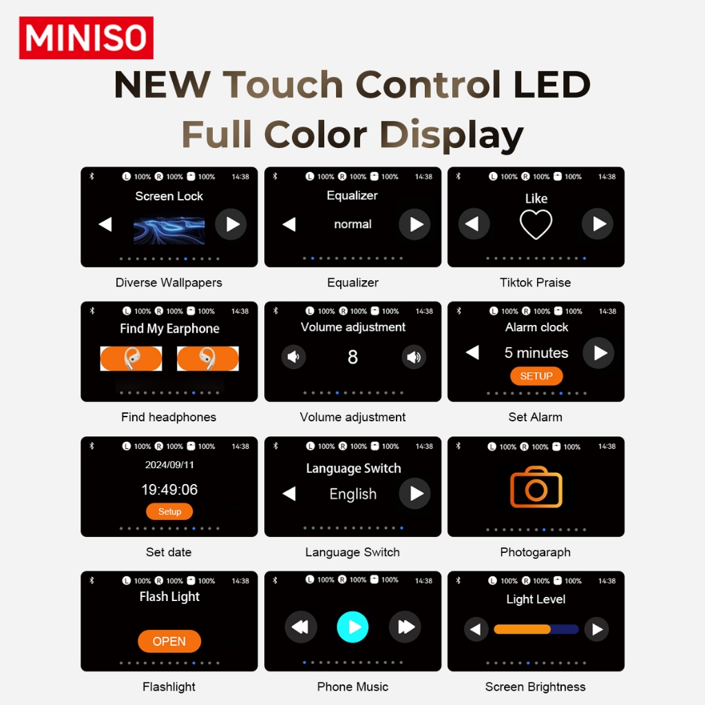 MINISO MS150 Smart Display AI Real-time Translation Bluetooth Headset Business Wireless Earbuds Bluetooth 5.4 Headset with Microphone Noise Reduction Waterproof IPX5 HD Call