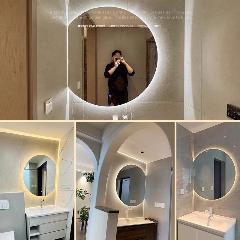 MNS(SG Stock) Bathroom Mirror Mirror With Light Toilet Led Smart Mirror Touch Bathroom Mirror Semi Round Mirror Led Wall Mirror