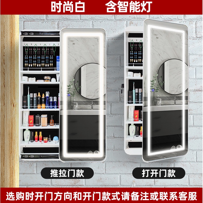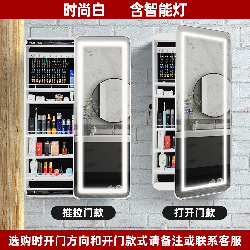 MNS Storage Mirror Wall Mirror Storage Lens Whole Body Lens Round Corner Jewelry Storage Integrated Led Mirror Household Bedroom Ins Style Dressing Mirror Mirror With Storage