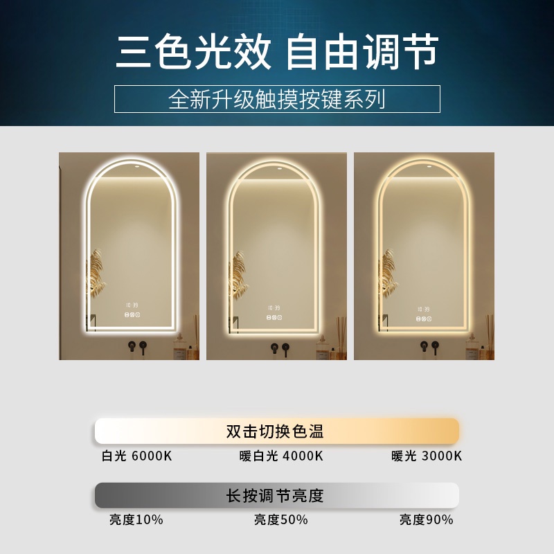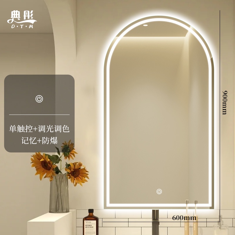 MNS Toilet Mirror Wall Mounted Arch Smart Bathroom Mirror Toilet Bathroom Mirror Led Illuminated Vanity Mirror