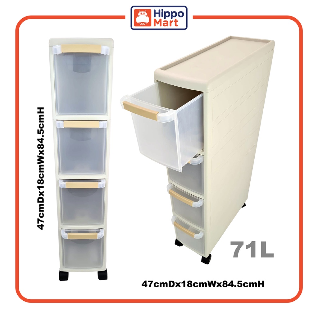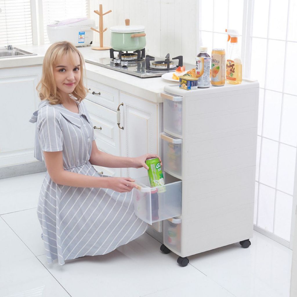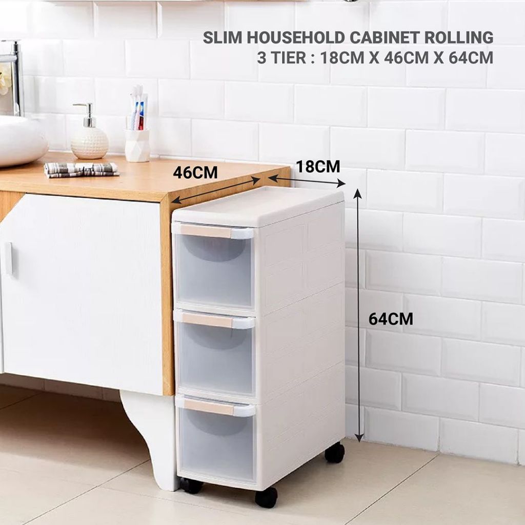 MODECO Slim Rolling Cabinet | 3 or 4 Tier Household Storage Unit | Space-Saving Organizer with Wheel