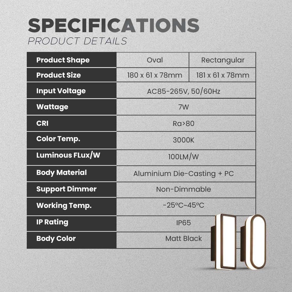 MODERN LED WALL LAMP 7W OVAL RECTANGULAR DECORATIVE LED WALL LIGHT LAMPU DINDING LED