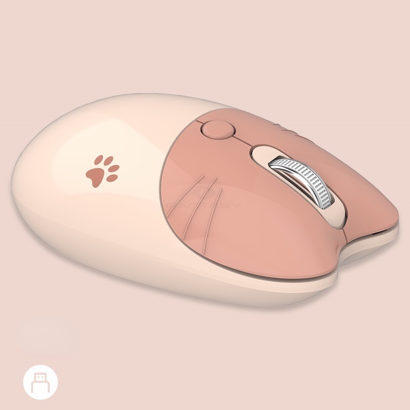 MOFII Silent Wireless Mouse Dual Mode Mouse Bluetooth Mute Mouse 2.4Ghz USB Optical Mice Cute Kitty Cat Animal Shape Computer Gaming Mouse Crodless Mouse for PC Laptop Notebook