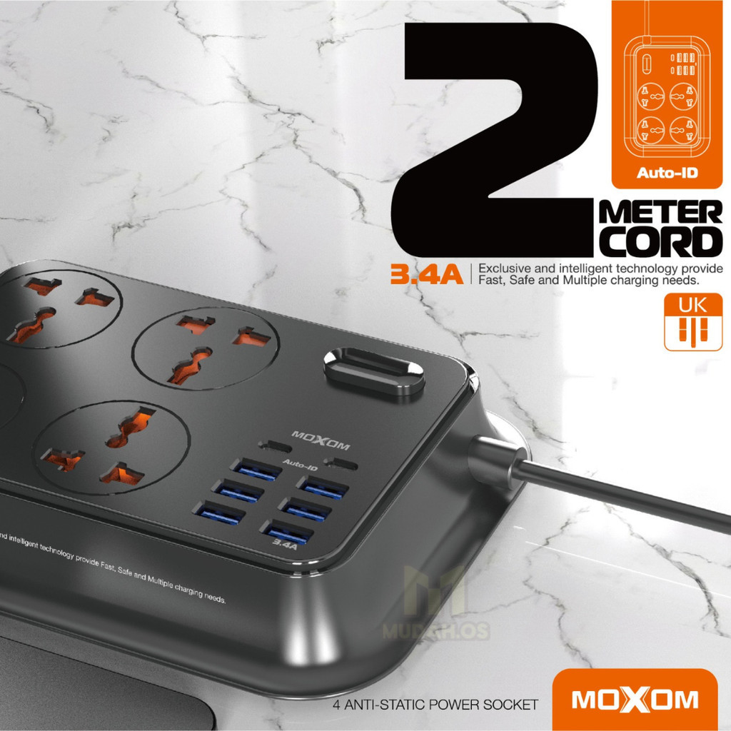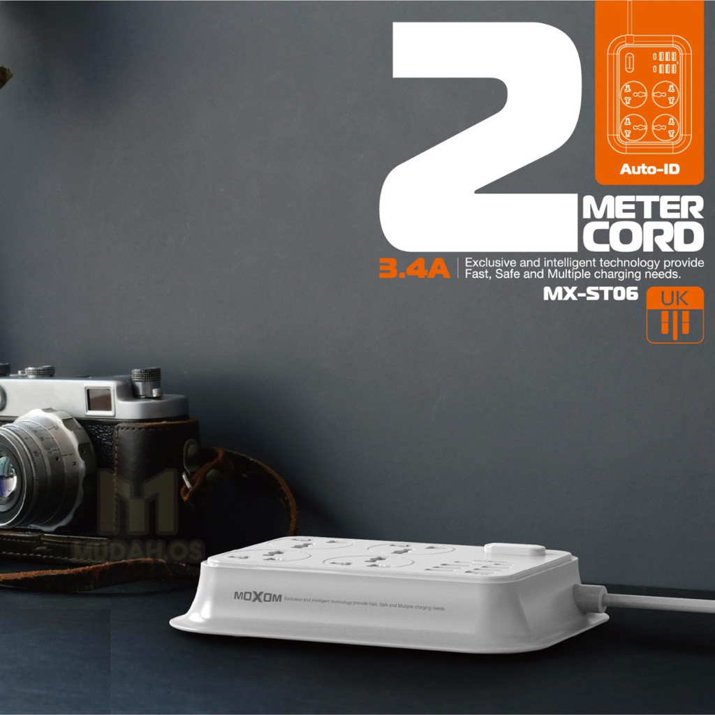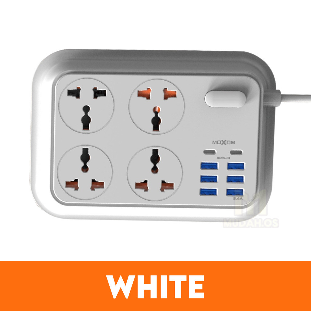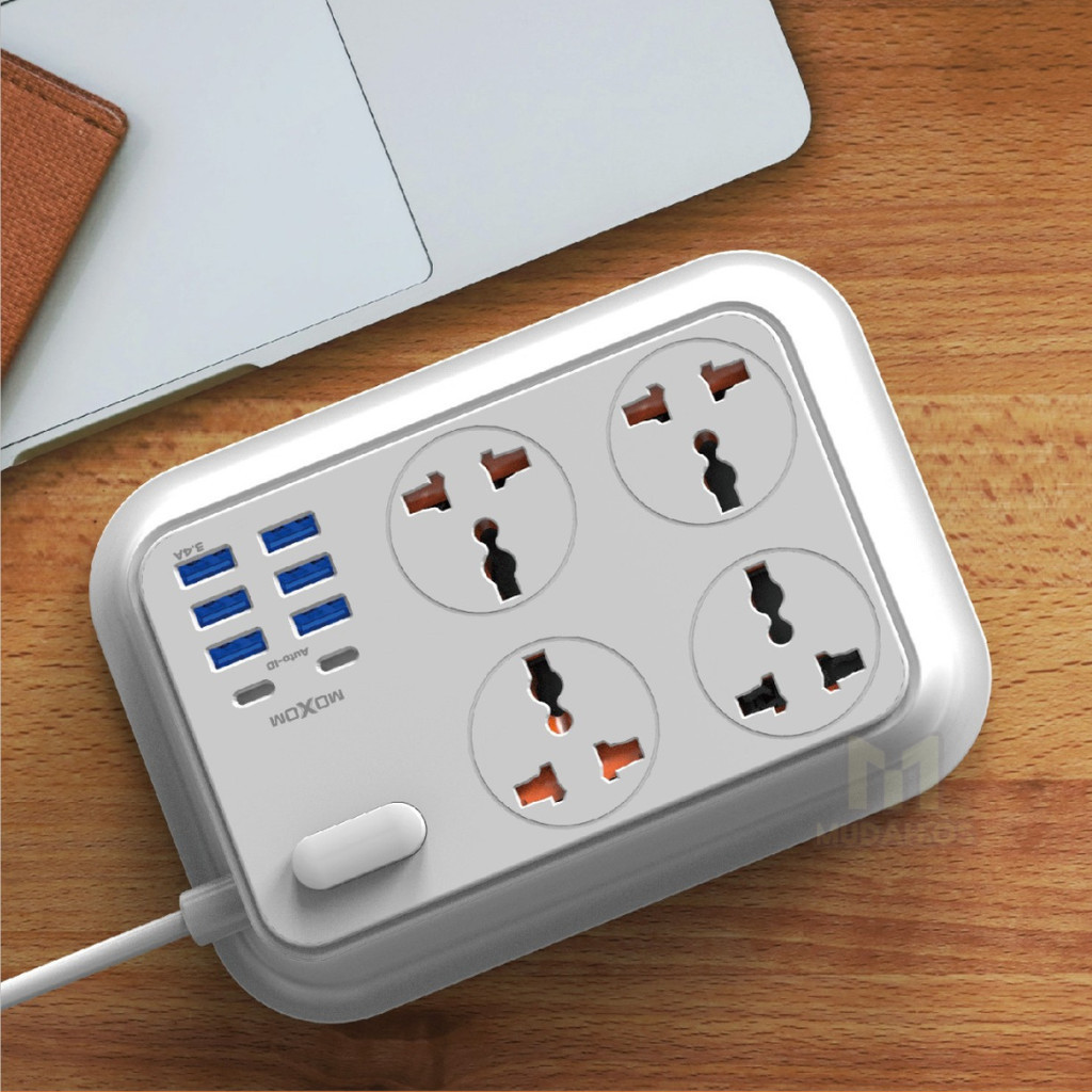 MOXOM Extension 3 Pin Plug With USB 4 Gang Power Socket Extention Type C Output Port 3.4A Auto ID Cut Off MDST06