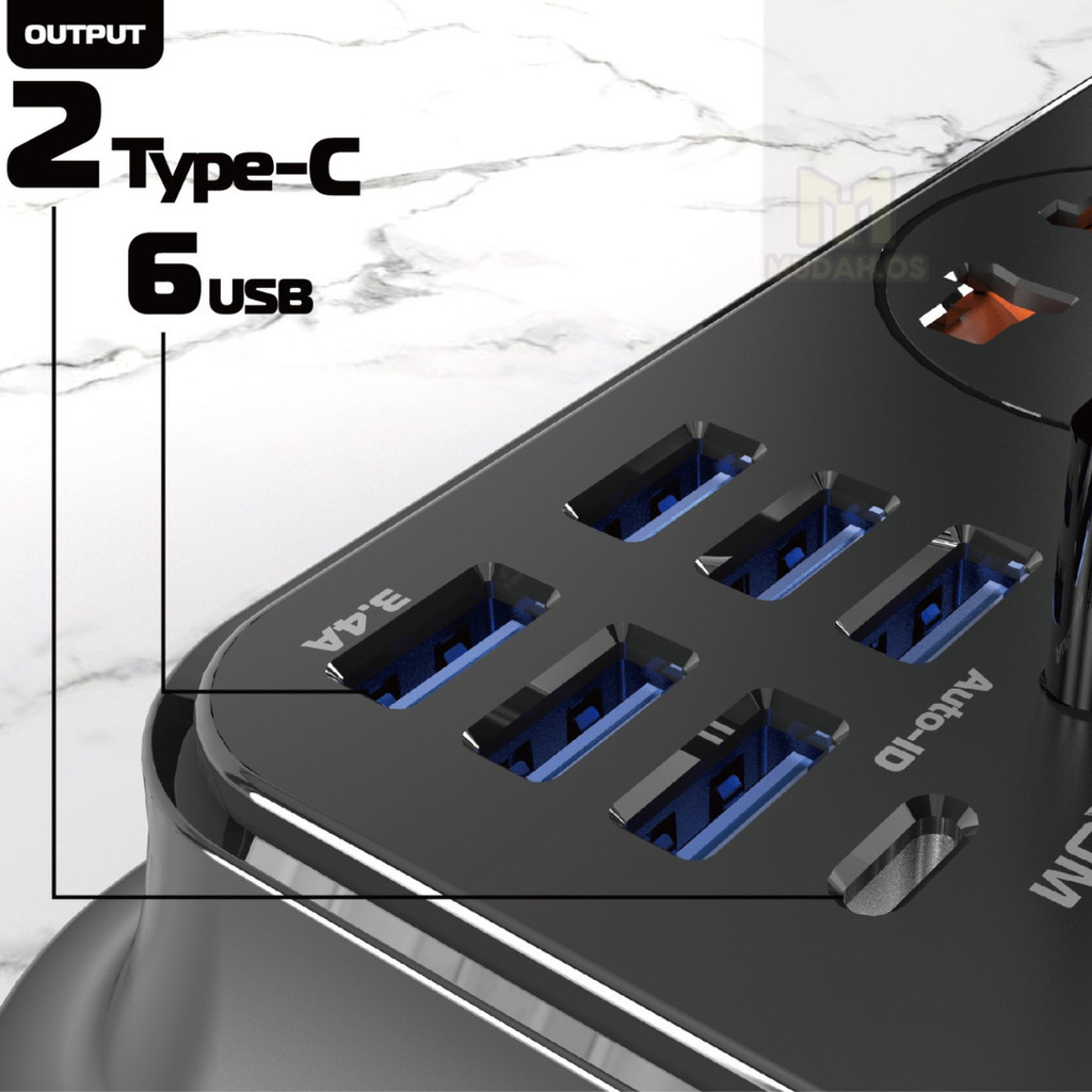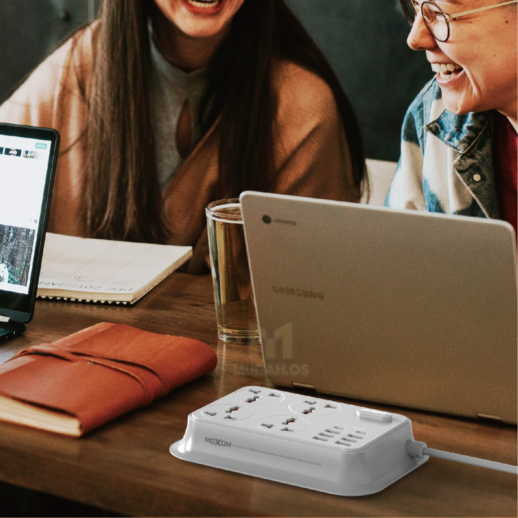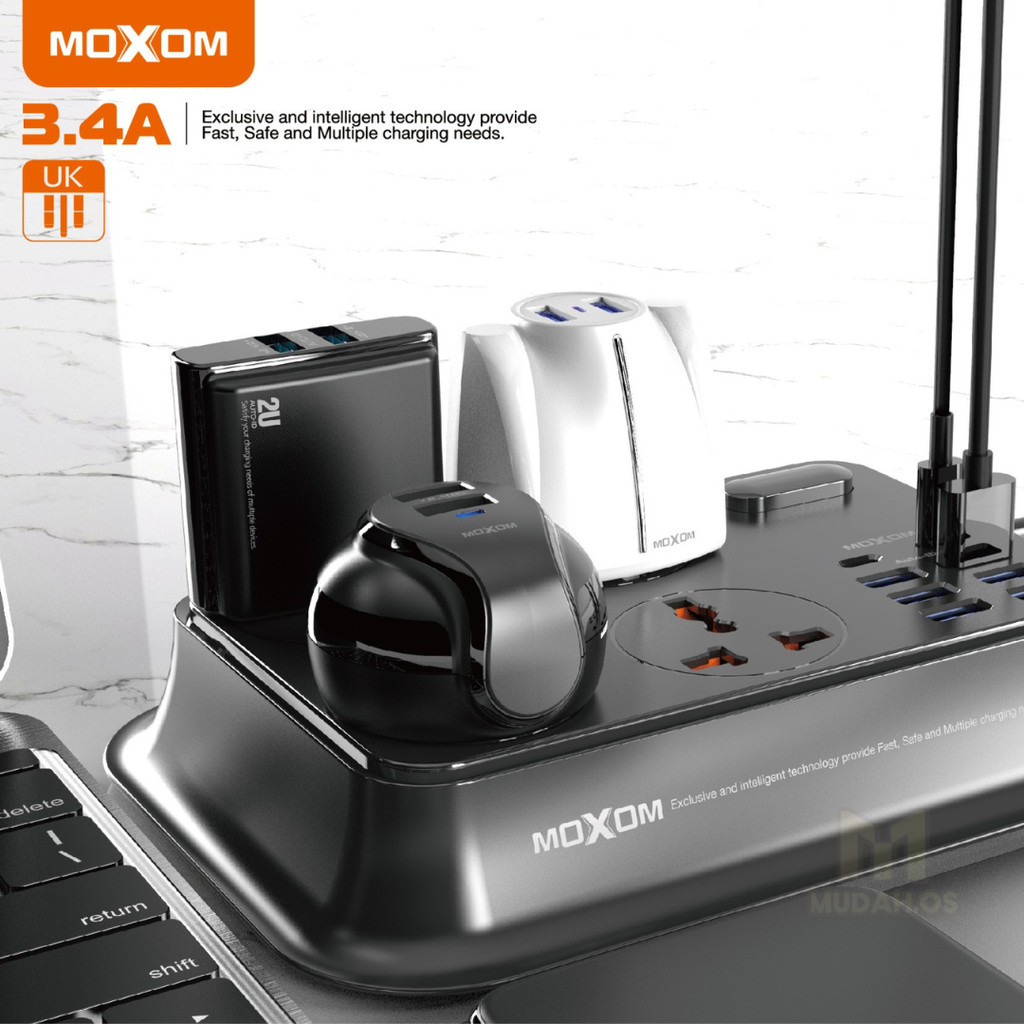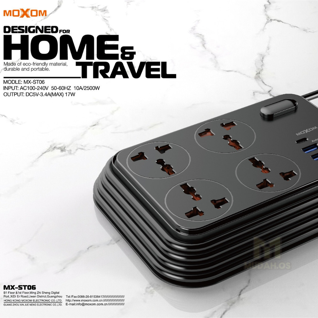 MOXOM Extension 3 Pin Plug With USB 4 Gang Power Socket Extention Type C Output Port 3.4A Auto ID Cut Off MDST06