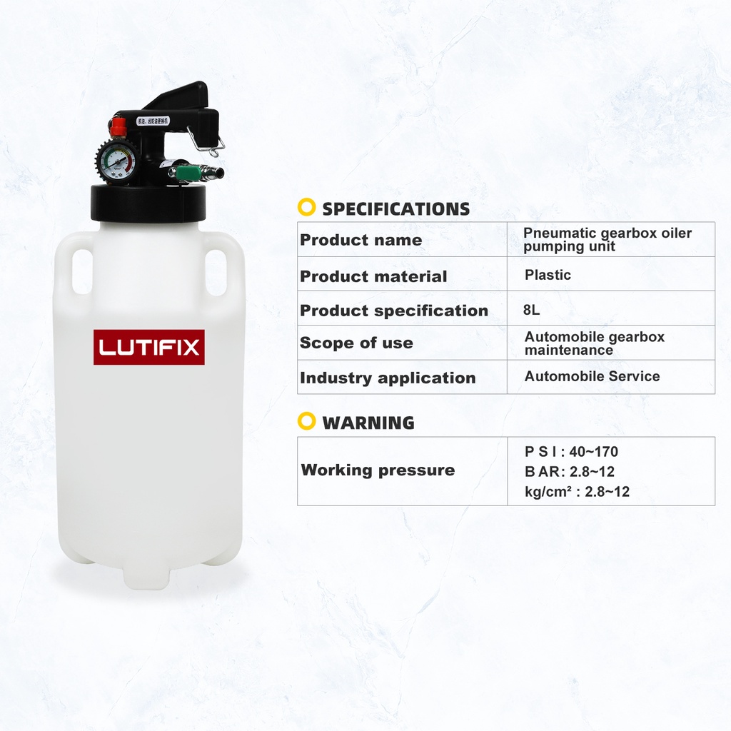MRCARTOOL LUTIFIX 6L / 8L / 10L Pneumatic ATF Refill Dispenser Auto Transmission Fluid Fill/Extract Automatic Transmission Filling Adapters Oil Change Oil Extractor Pump Gearbox Oiler