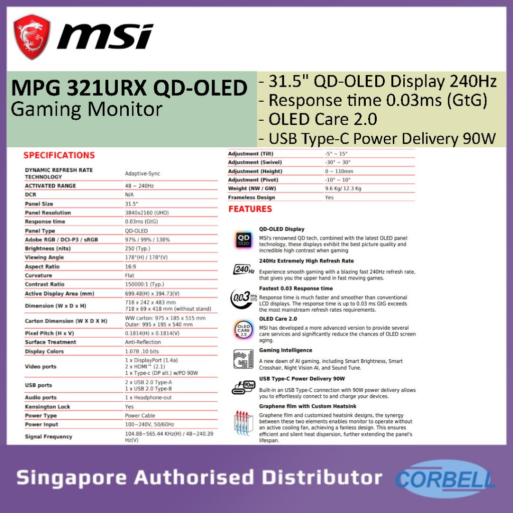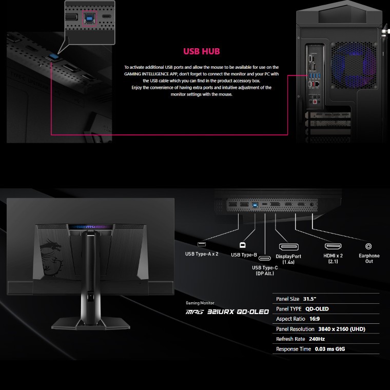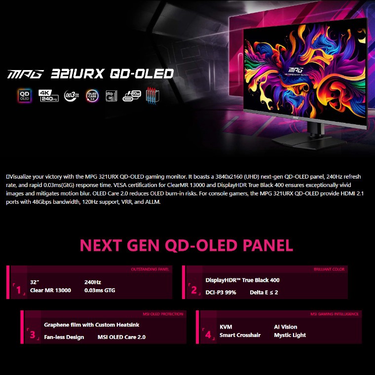 MSI MPG 321URX QD-OLED 31.5" gaming Monitor 240hz/0.03ms/HDMI/DP/TYPE-C (MO 1108)