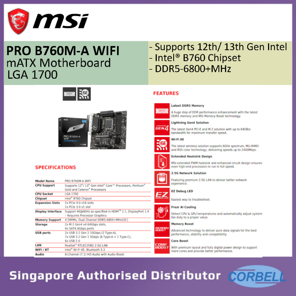 MSI PRO B760M-A wifi Ddr5 matx motherboard Intel 12th/13th Gen / Lga 1700 [MB 8083]