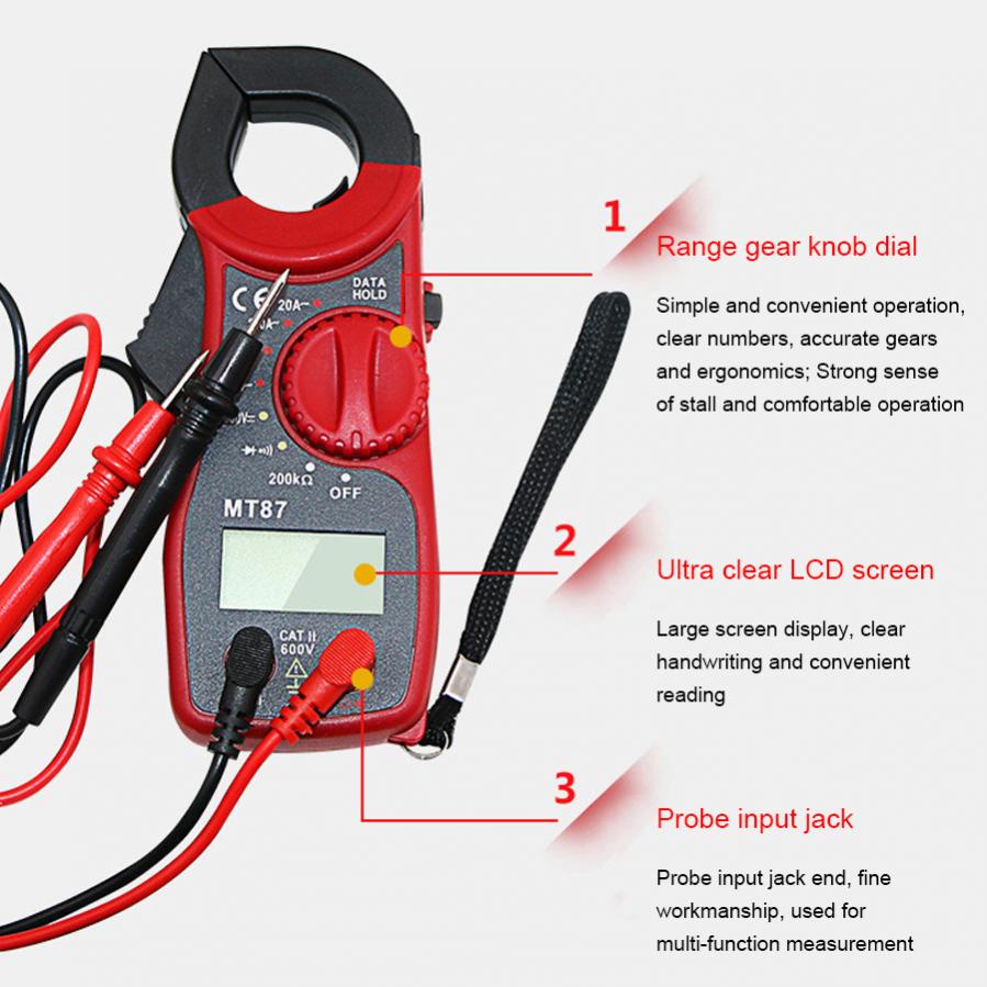 MT87 Electronic Multimeter Digital Clamp Meter Tester DC AC Voltage Current Tongs Resistance Tester LCD Multimeter Tools