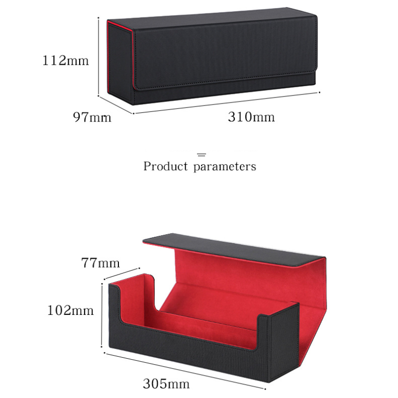 MTG Desk Box 400 Card Desk Box Card Storage Box Deck Box PU Leather Deck Box for Trading Card Games (Black+Red)