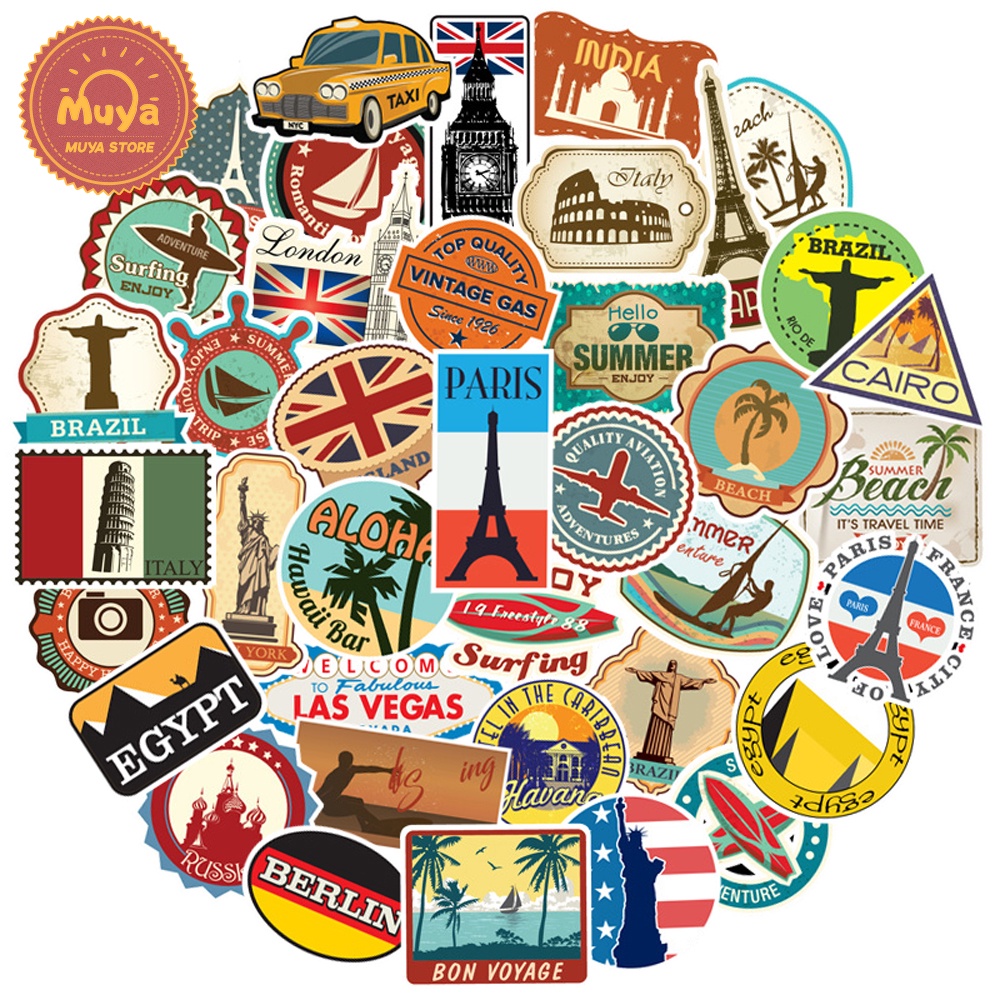 MUYA 100pcs Travel Around the World Stickers Pack Waterproof Building Vinyl Stickers for Laptop Luggage