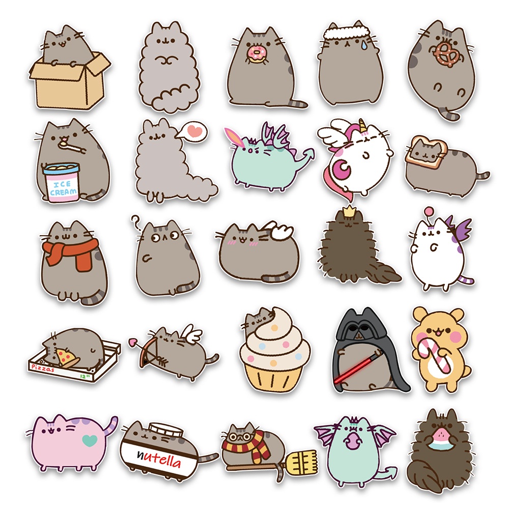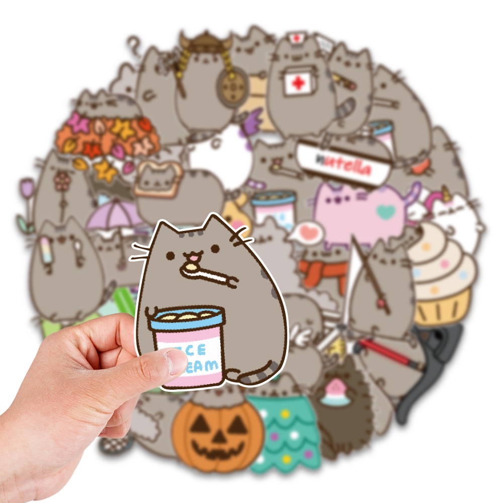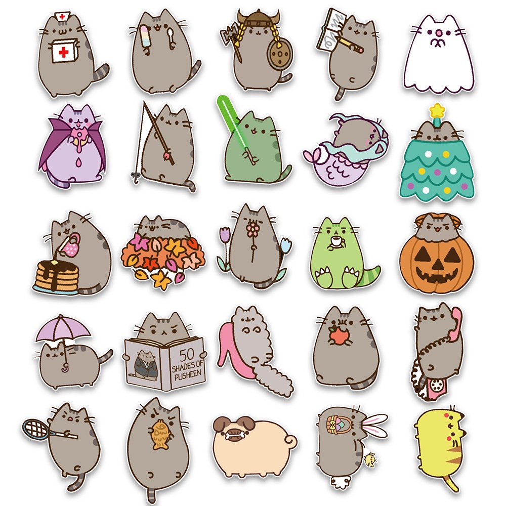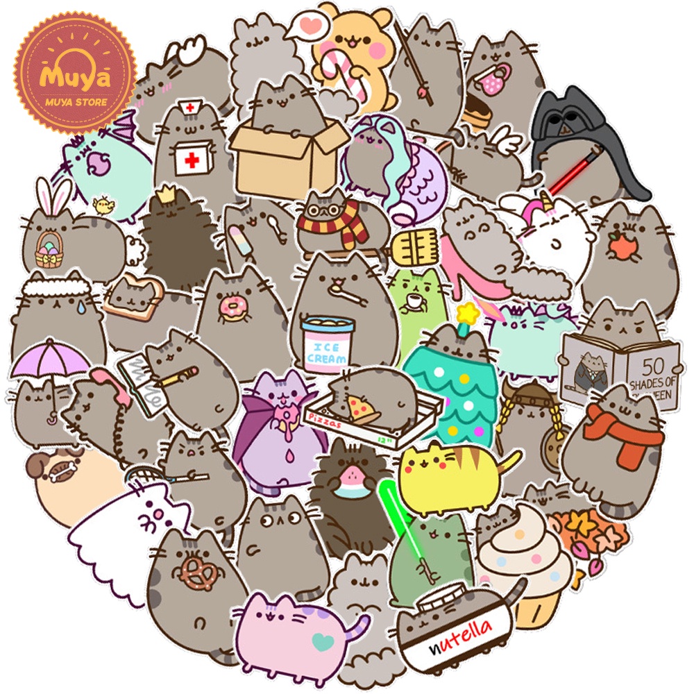 MUYA 50pcs Pusheen Stickers for Kids Cute Cat Stickers for Journal Waterproof Graffiti Stickers