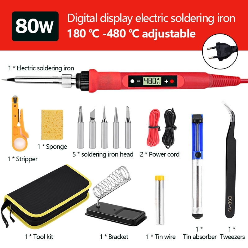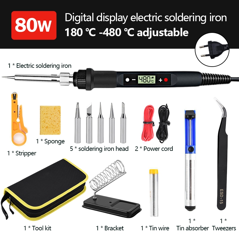 MY 80W Digital Electric Soldering Iron Kit Adjustable Temperature Welding Tools Stand Fer Souder Solder Tip Solda