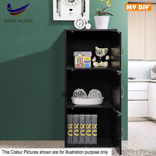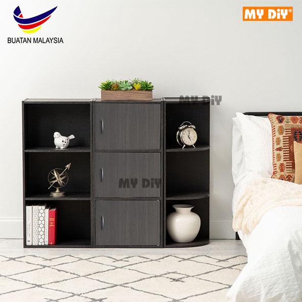 MYDIYSDNBHD - 3 Tier Storage Shelf With Door Model 1311 Colour Oak Grey Shoes Rack Cabinet Utility Shelf Book Shelf