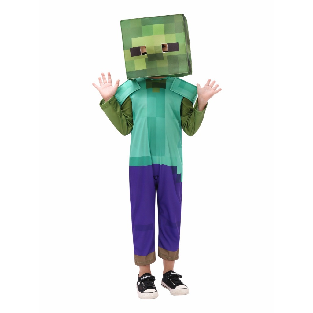 MYLITTLELASS Minecraft Kids Costume Steve Creeper Cosplay Halloween Jumpsuit Mask Fancy Dress 3-12Y